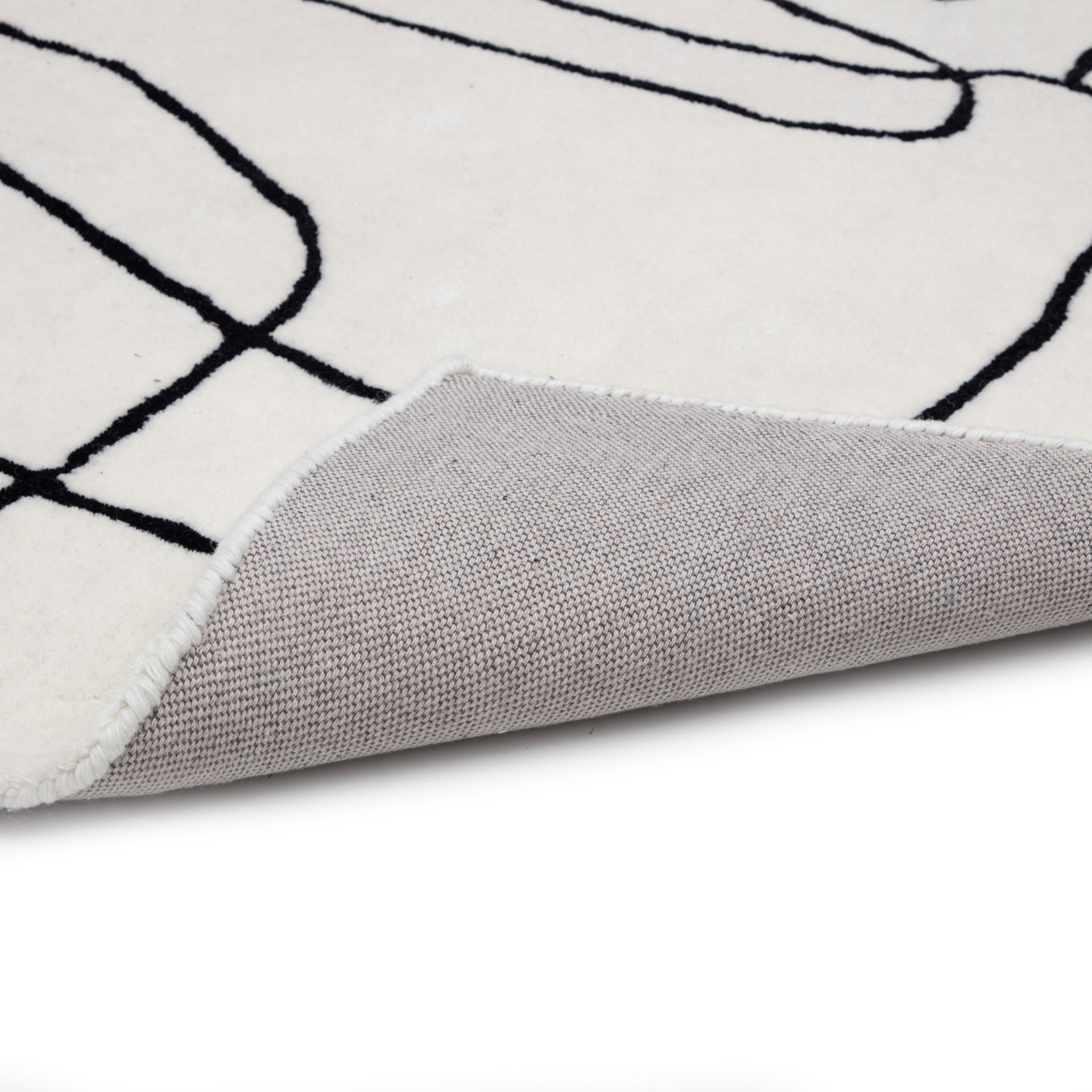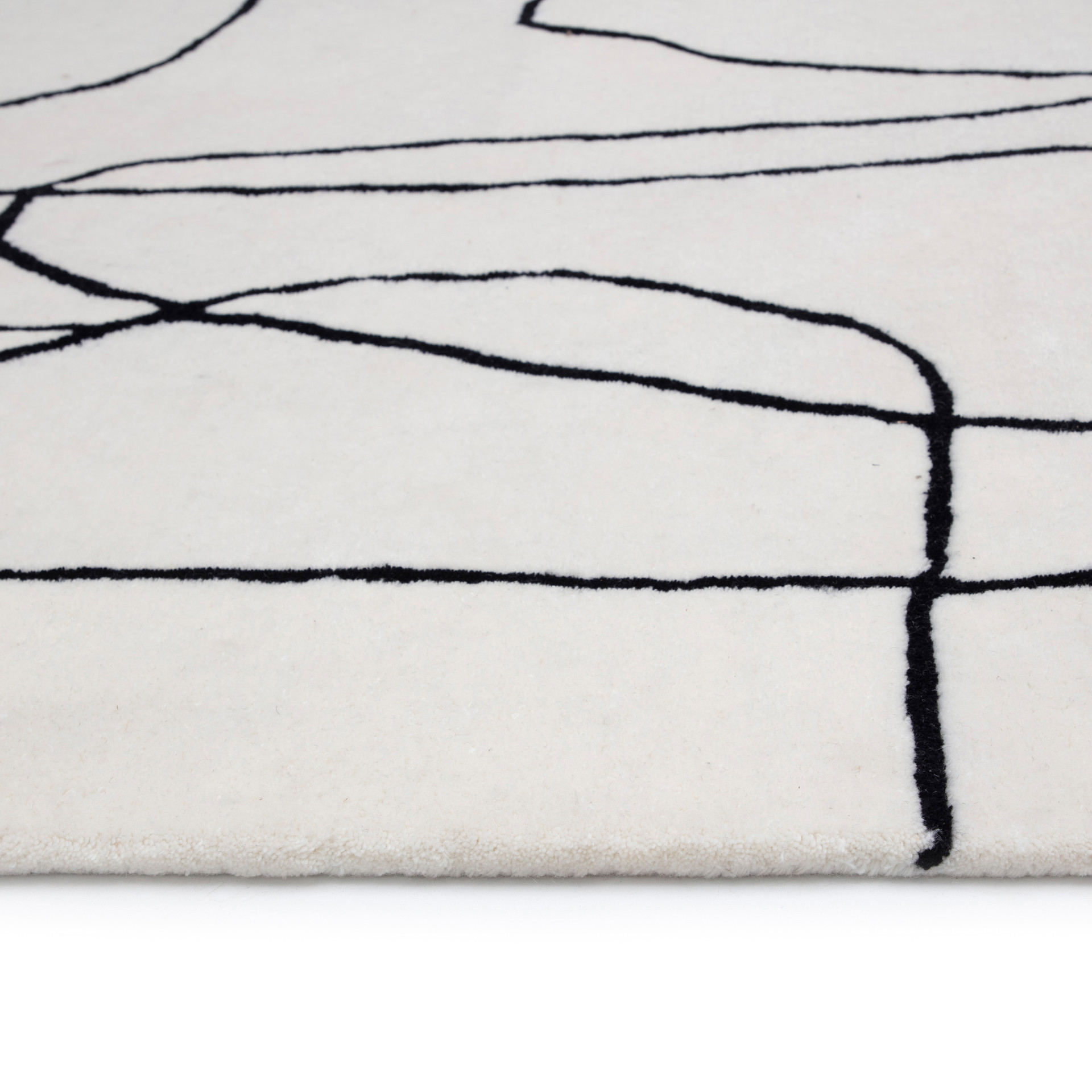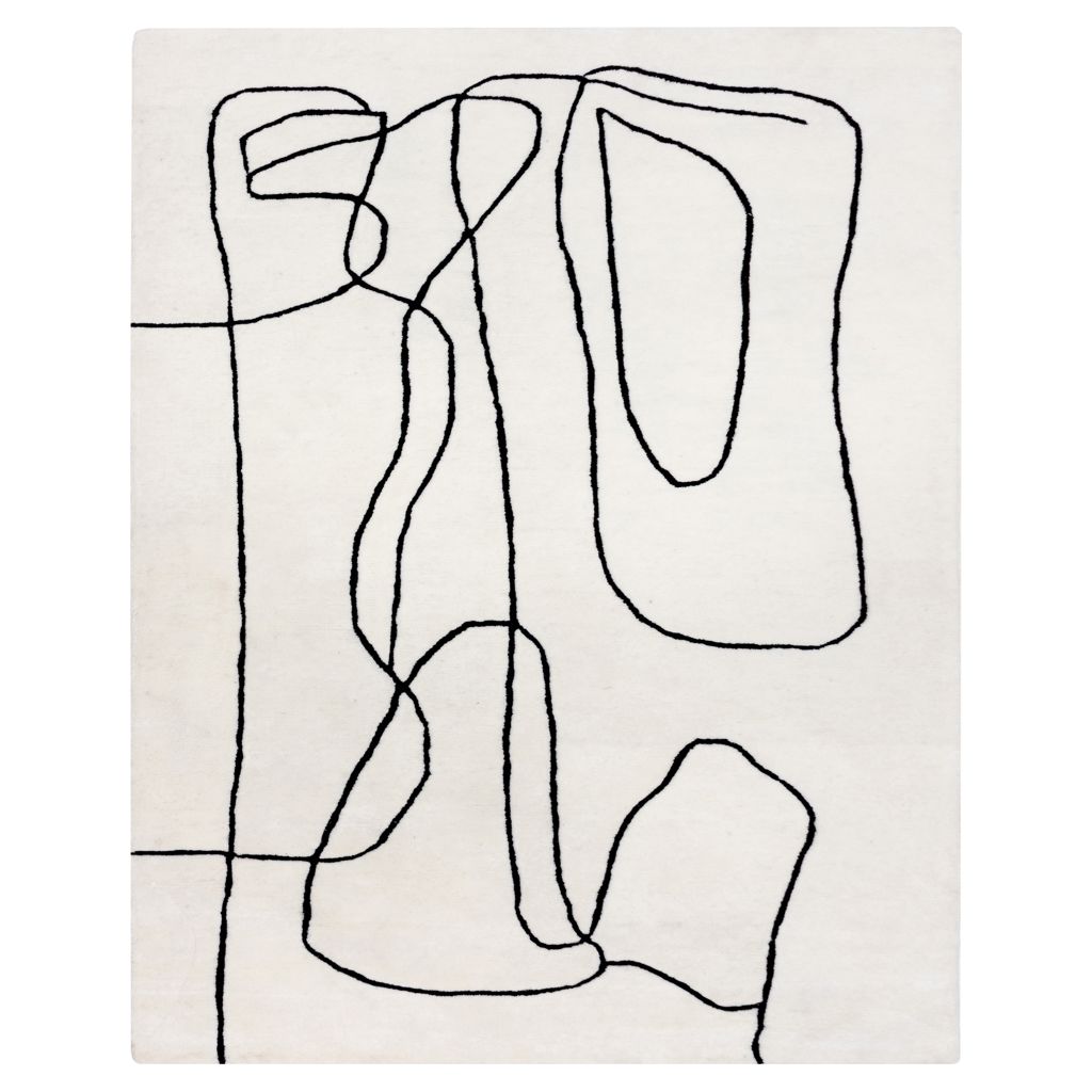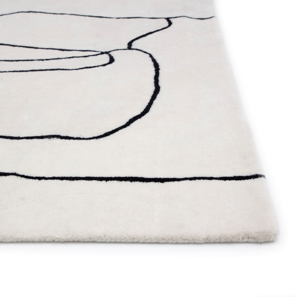 Le tapis Tilda offre un style chic avec une palette monochrome. Touffeté à la main en 100% laine, son poil ras et doux est orné d'un motif linéaire abstrait rappelant une oeuvre d'art.