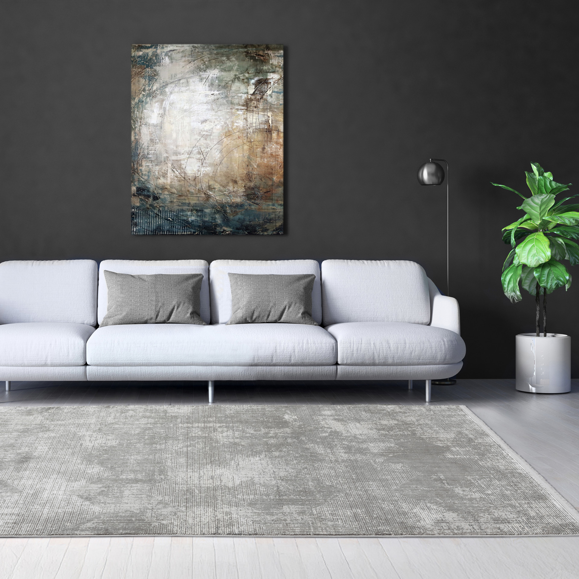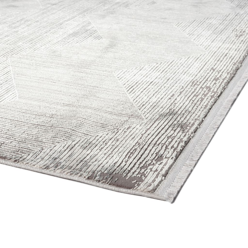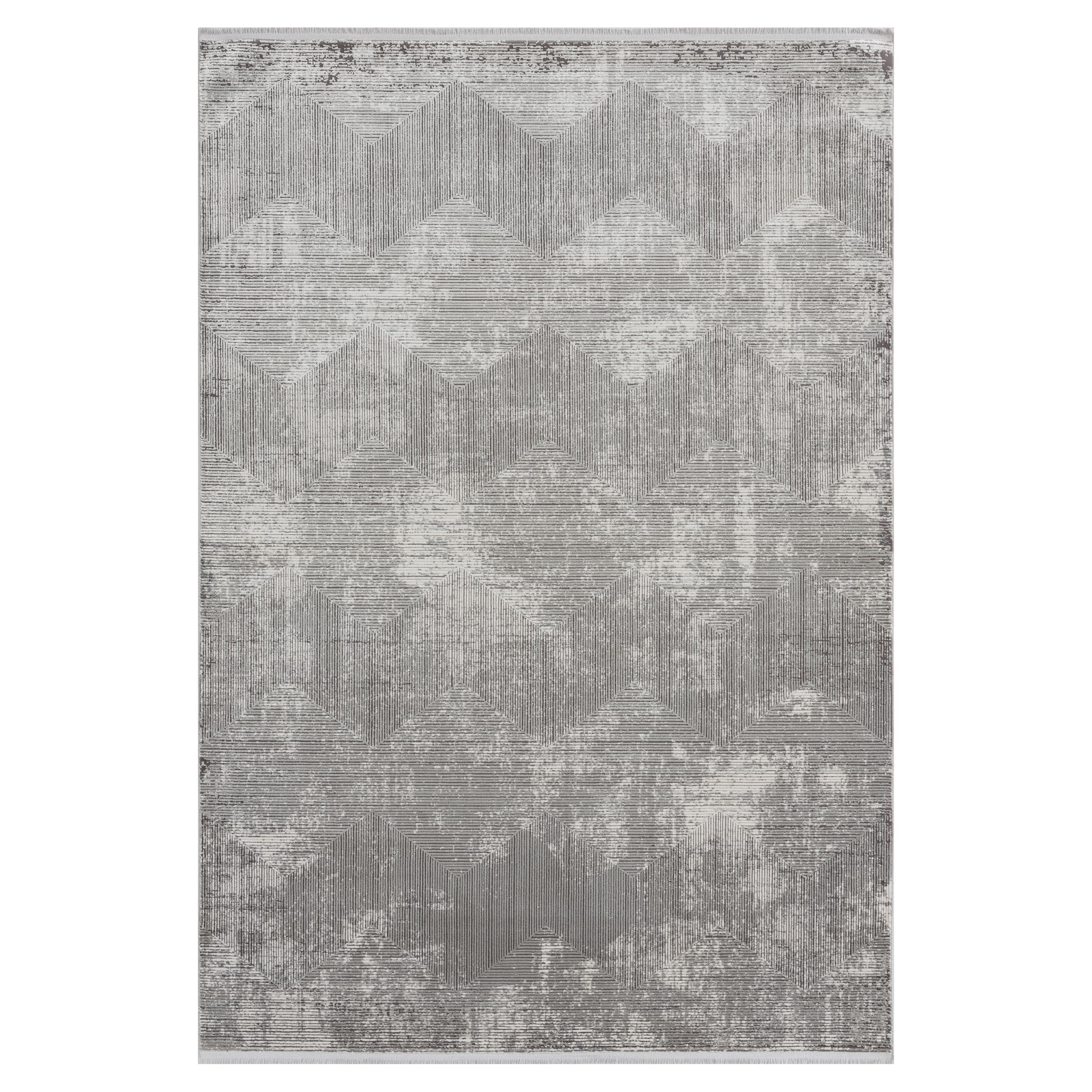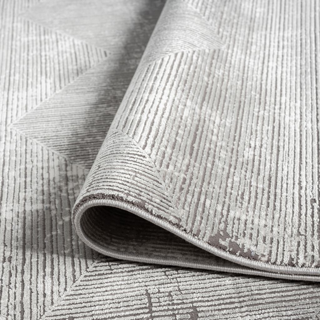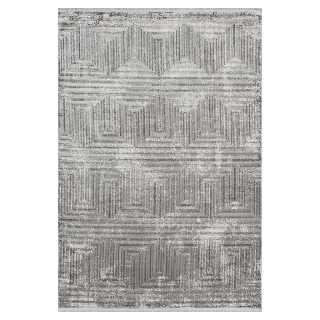 Ce tapis moderne présente un motif géométrique distinctif en nuances de gris, créant un effet de profondeur et de texture unique. Idéal pour un intérieur contemporain, il ajoute style et sophistication à votre espace.