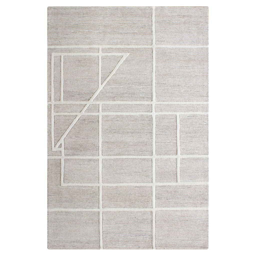 Tapis graphique laine & polyester – Fabrication artisanale en Inde