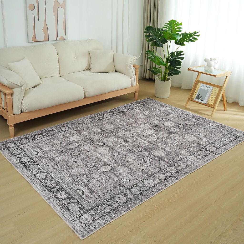 Ce tapis lavable à la machine, fabriqué à 100% en polyester, arbore un motif oriental raffiné inspiré des designs classiques.