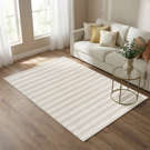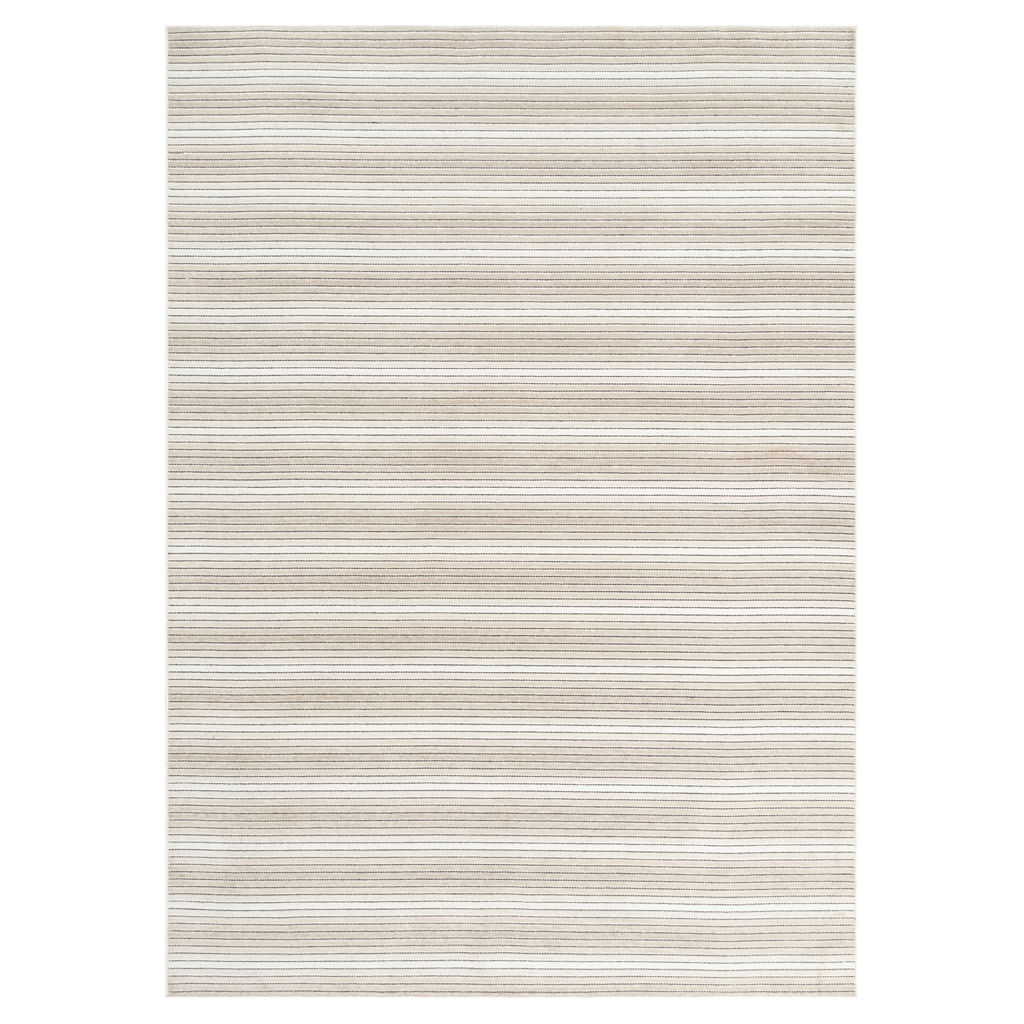 Ce tapis élégant, fabriqué à 100% en polyester, se distingue par son design rayé sobre et contemporain.