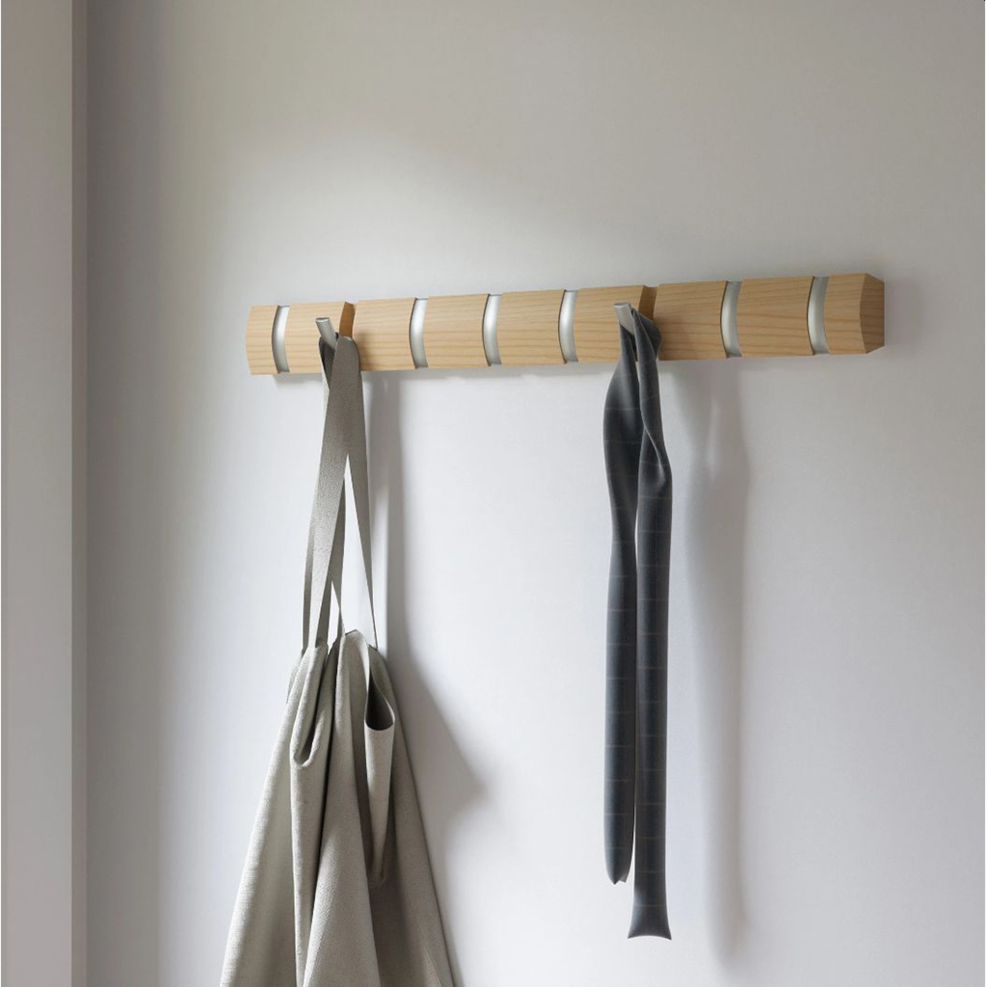 Flip est un porte-manteau mural moderne mais fonctionnel avec un grand espace de suspension là où vous en avez le plus besoin.
