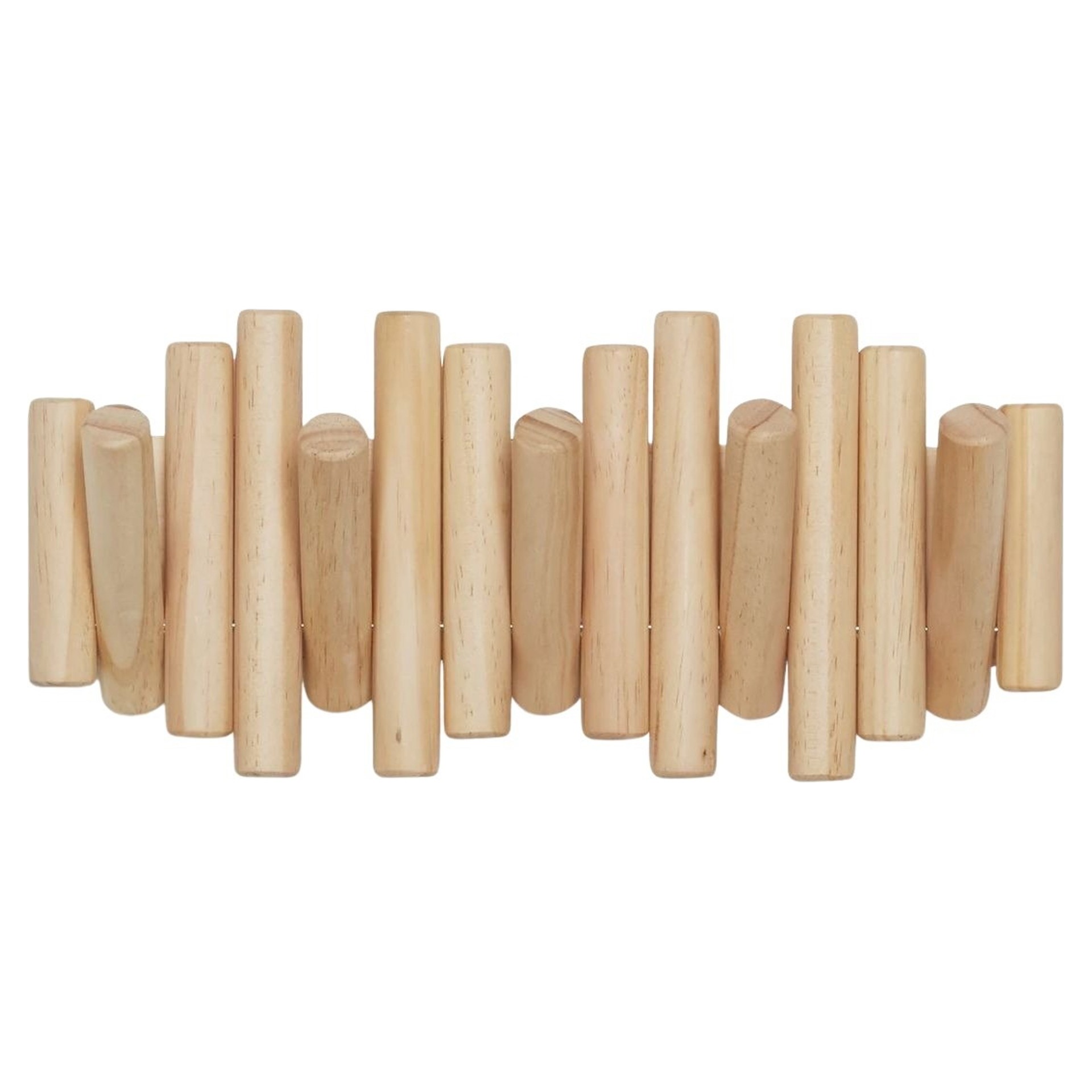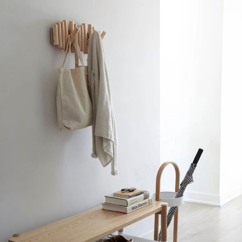 À première vue, vous ne réaliserez peut-être même pas que Picket est un porte-manteau mural pratique grâce à ses chevilles en bois de pin biseautées et à sa belle forme.