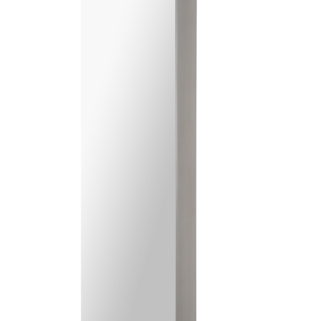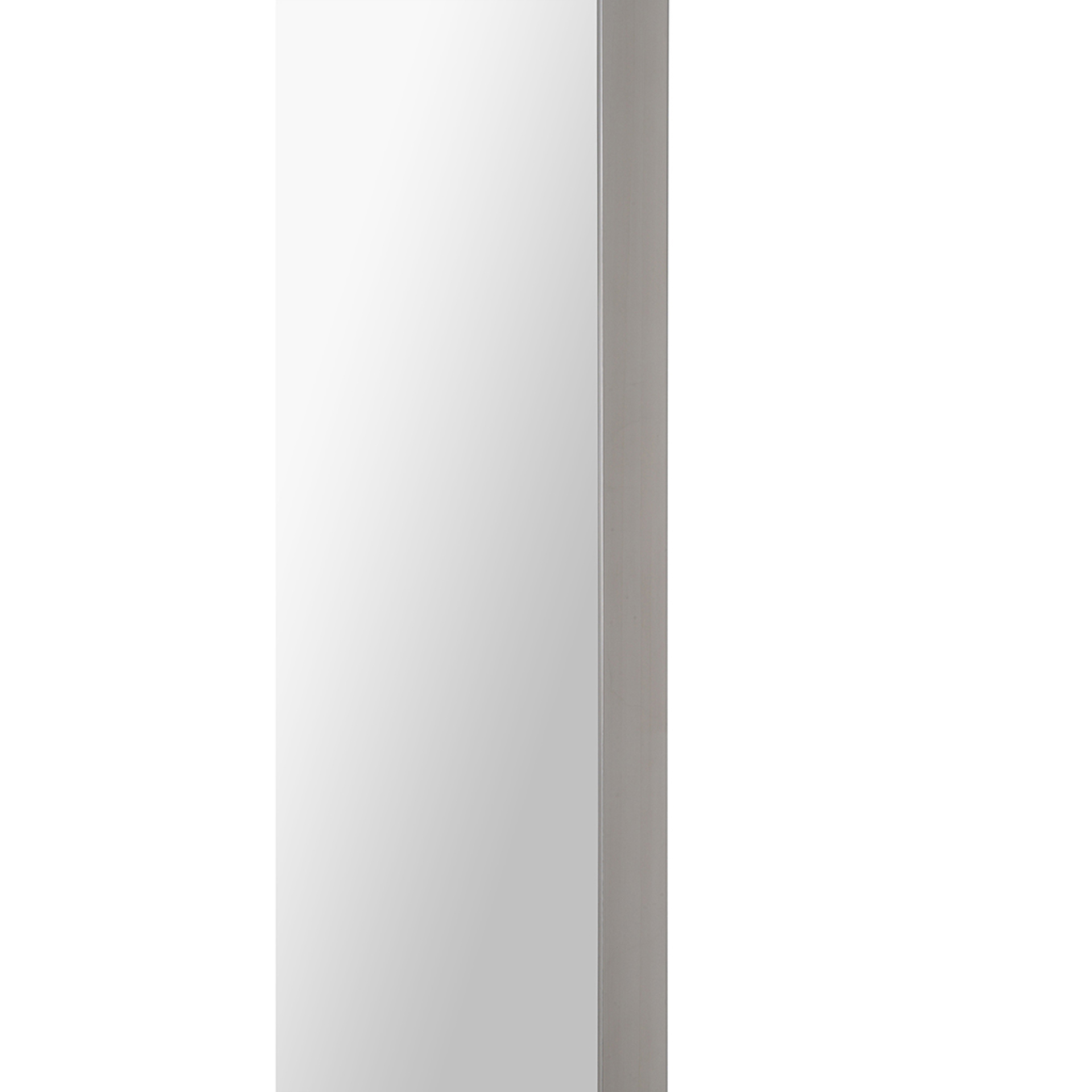 Un nouveau regard sur un miroir élégant. Le cadre en acier inoxydable au fini nickel satiné ajoute un look moderne à votre salle d'eau. Les bords arrondis du design rectangulaire lui confèrent un attrait unique.