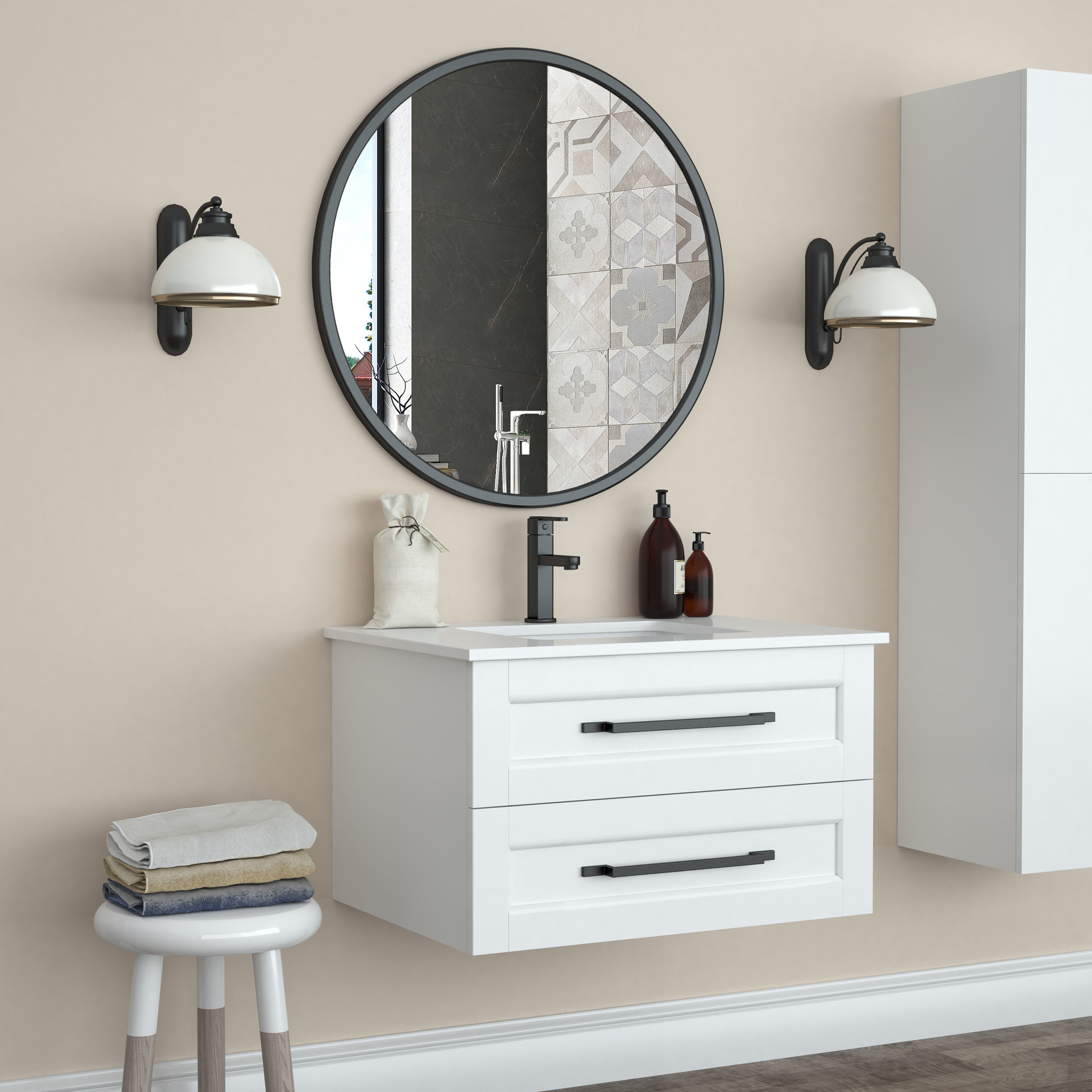 Miroir rond encadré noir 32 po Wainwright
