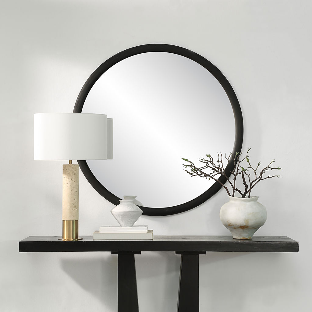 Ce miroir de 40 pouces de diamètre propose un style en tout point adapté à un espace ou bureau contemporain.