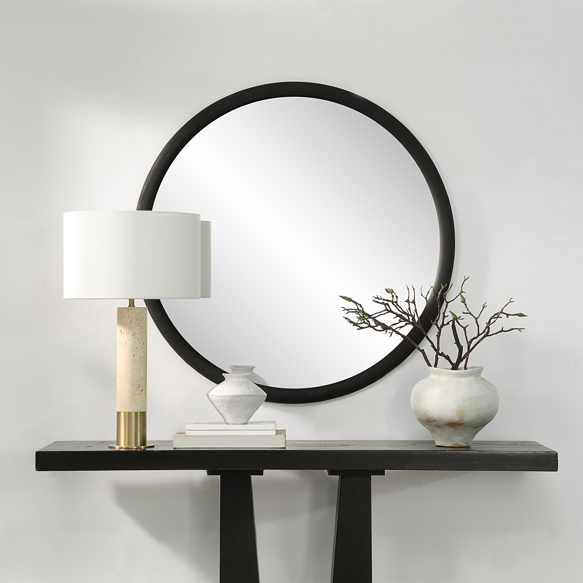 Doté d'un cadre en bois de pin fini de ton noir mat, il jouera la note de l'audace suspendu au-dessus d'une cheminée, dans une chambre à coucher, au-dessus d'un buffet de salle à manger ou dans une entrée.