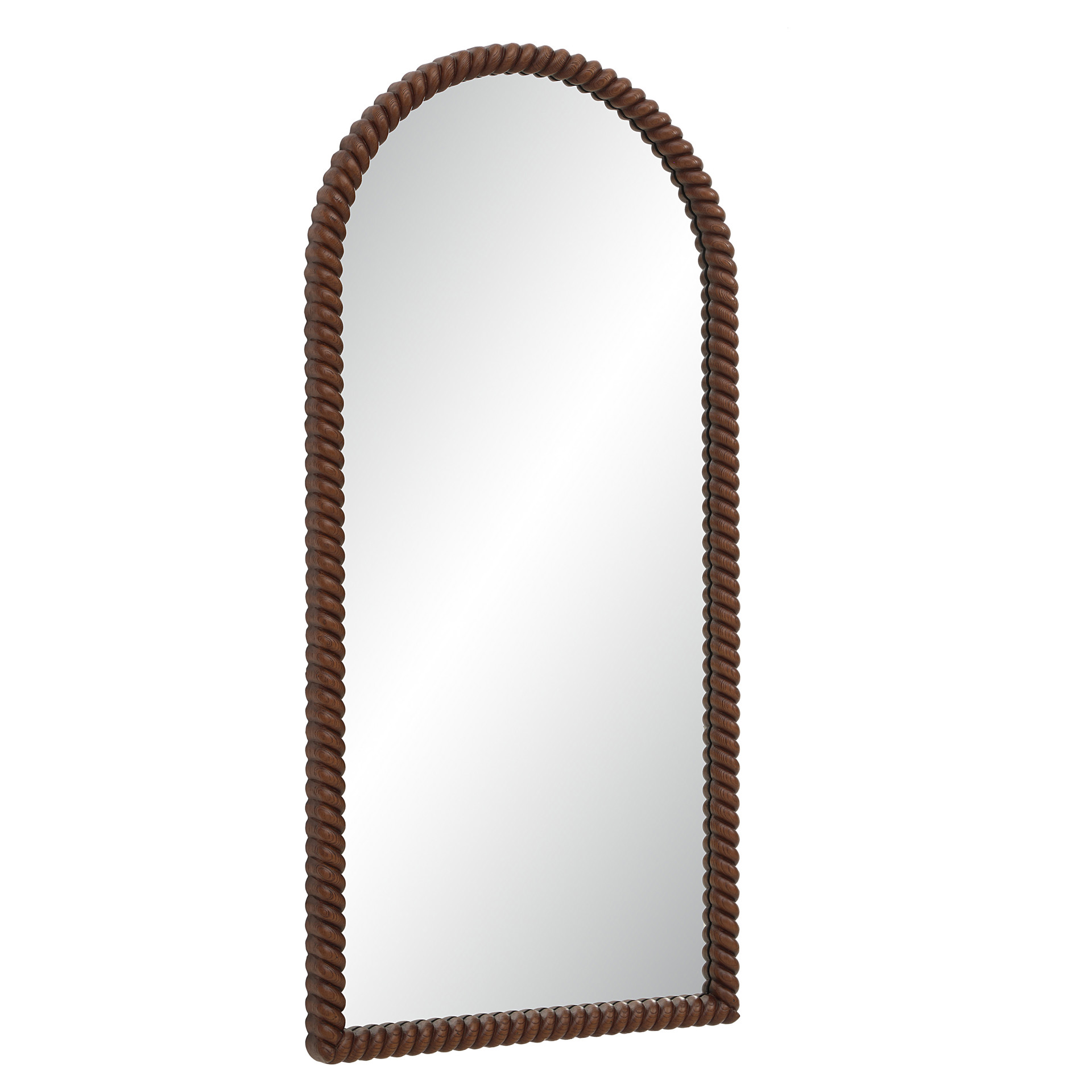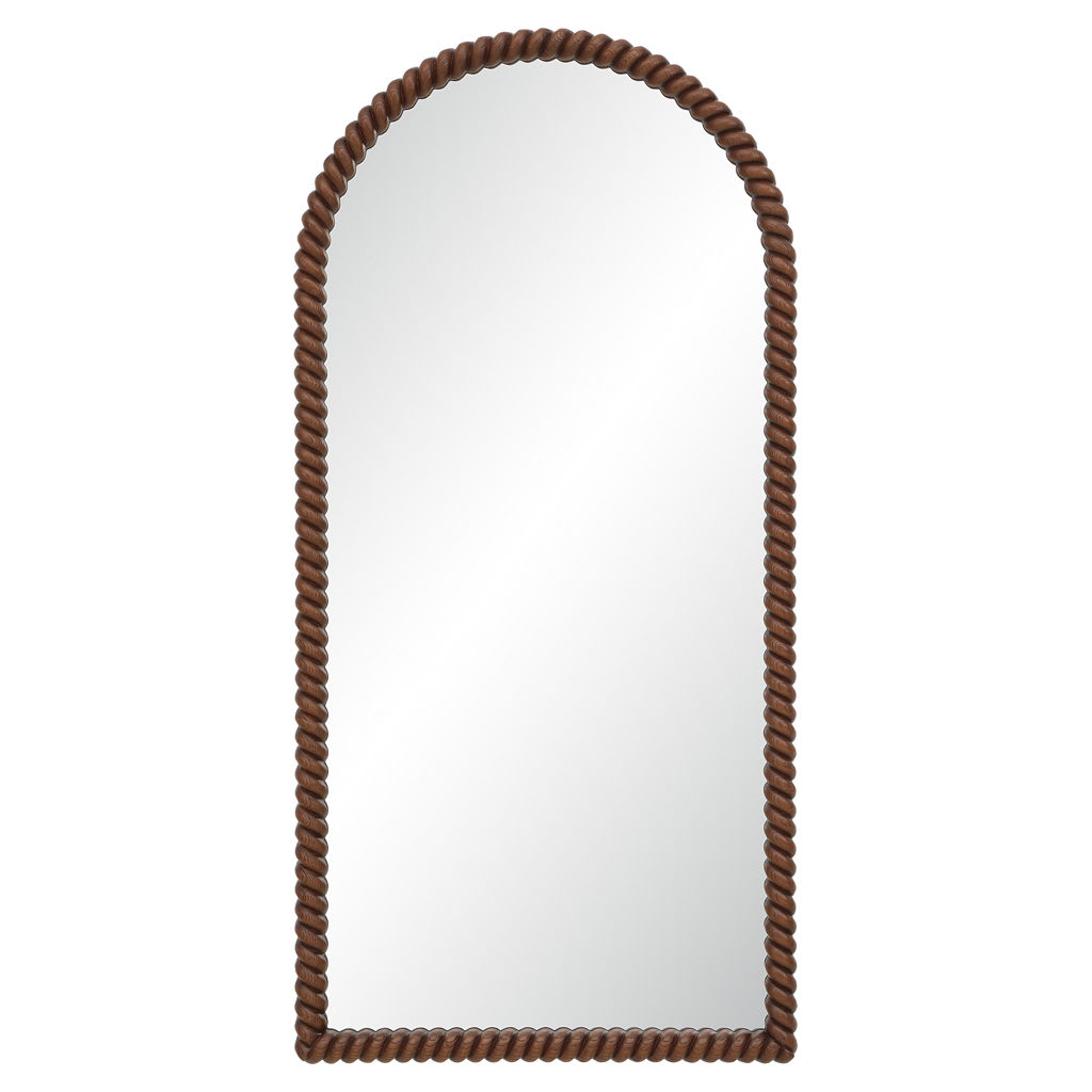 Le miroir cadre arqué allie modernité et charme classique. Son cadre inspiré d'une corde texturée et fini en noyer chaleureux, apporte profondeur et caractère à toute pièce.
