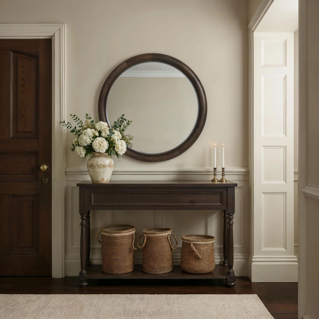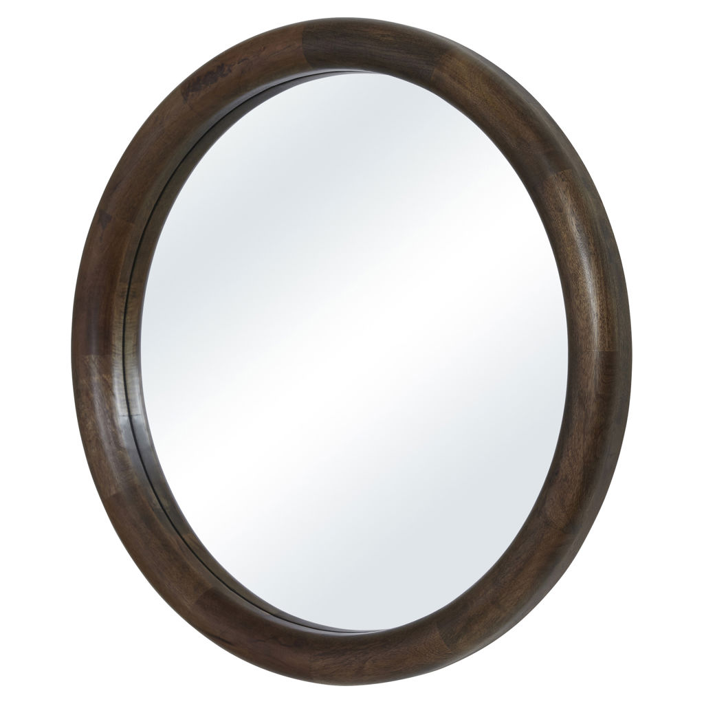 Apportez une texture chaleureuse et une beauté discrète à votre intérieur avec ce miroir mural rond. Son cadre en bois de manguier teinté noyer met en valeur le grain naturel, conférant au design chaleur et authenticité, tandis que son verre cristallin rehausse la luminosité et la profondeur.