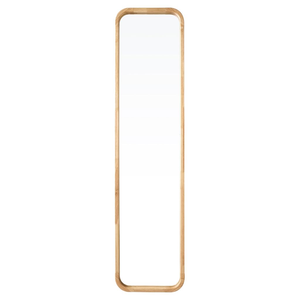 Grand miroir de plancher en bois naturel.