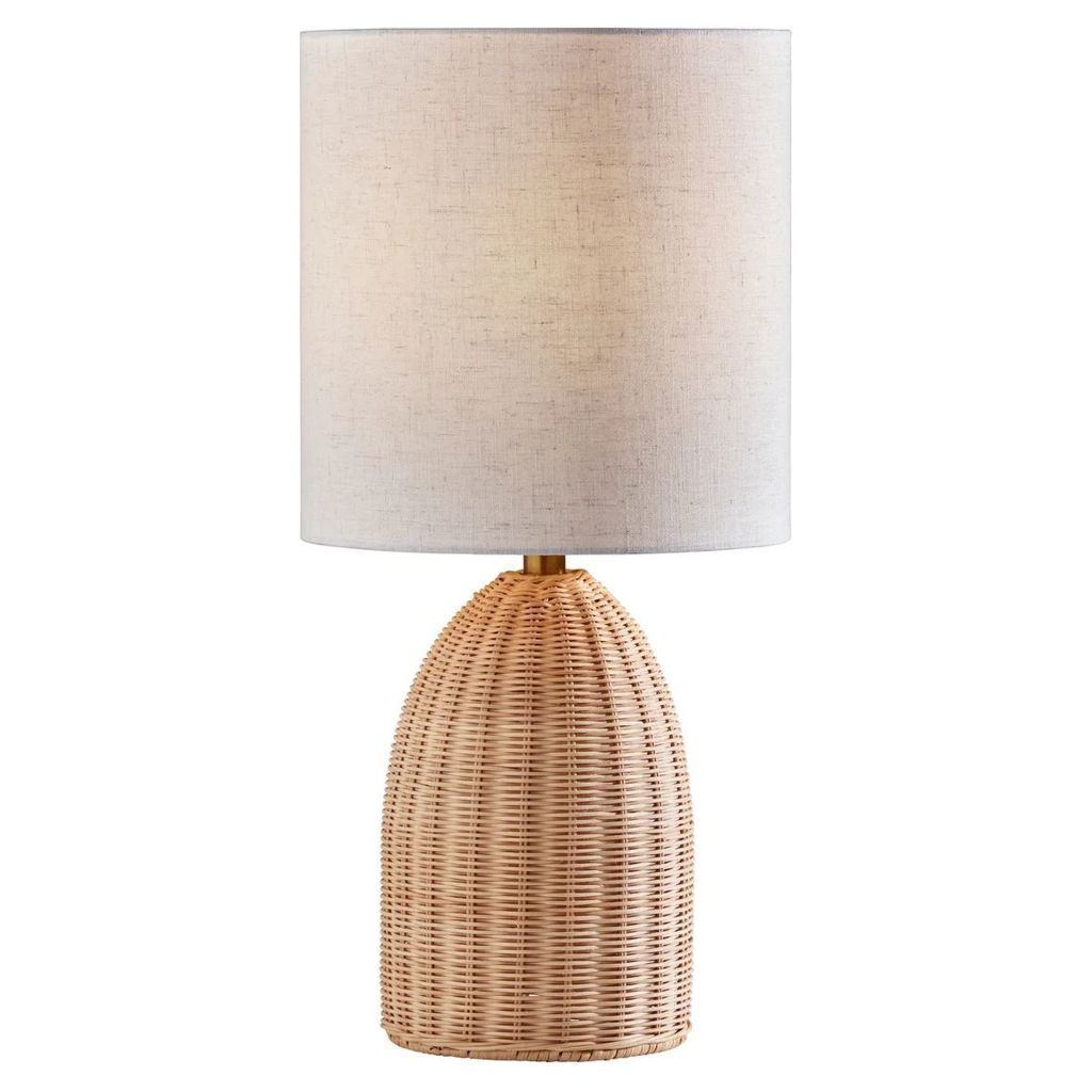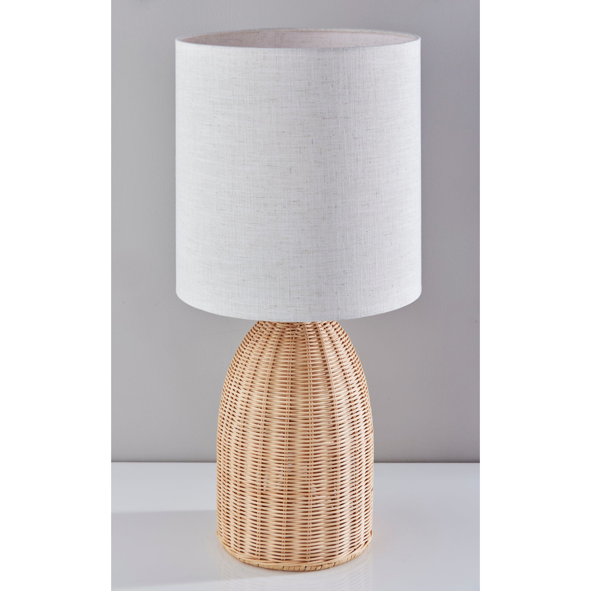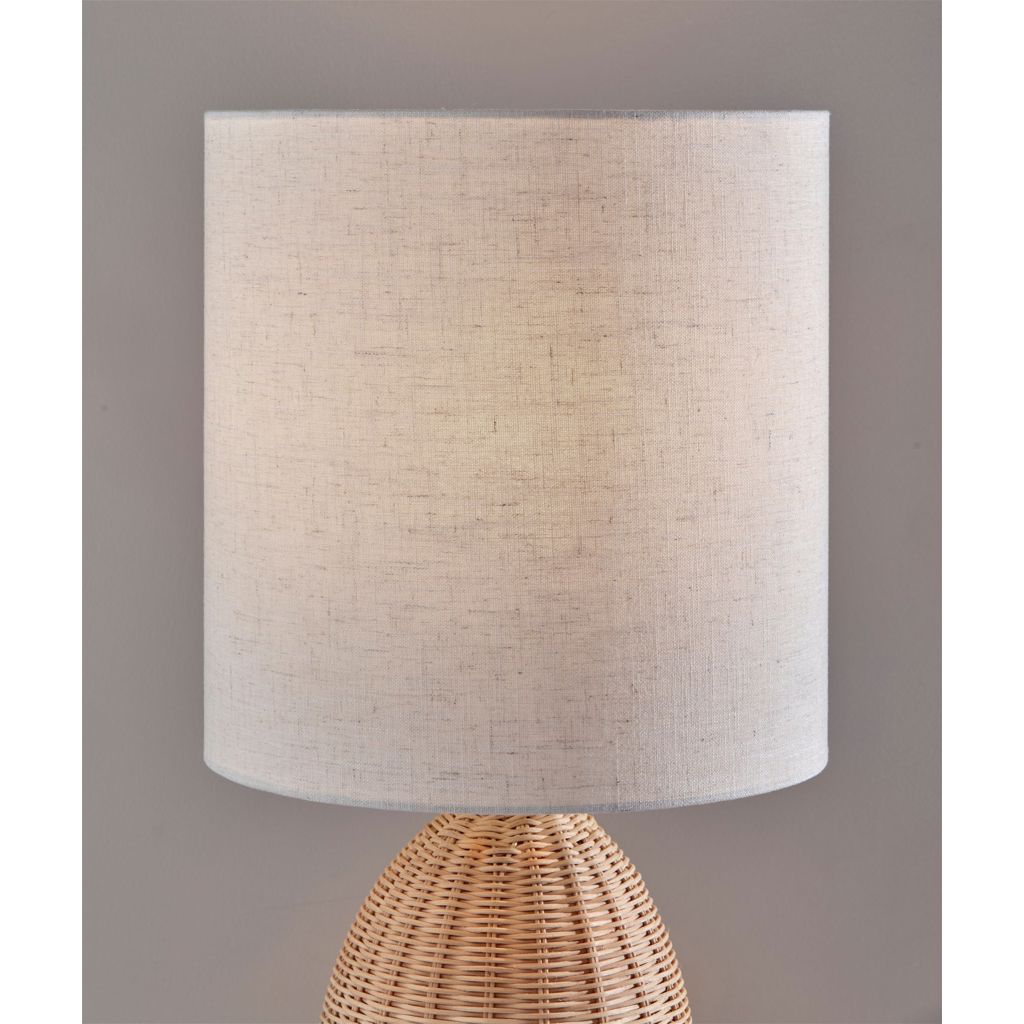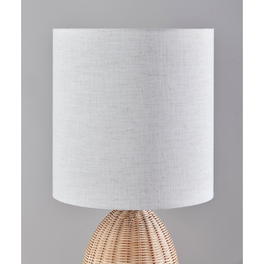 Cette lampe de table incarne l'élégance des matières naturelles avec sa base en rotin finement tressé qui évoque la forme gracieuse d'une bouteille. Chaque brin entrelacé témoigne d'un travail artisanal minutieux qui apporte texture et profondeur visuelle.