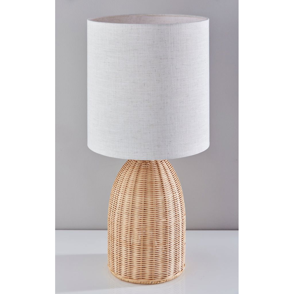 La silhouette élancée du rotin naturel s'harmonise parfaitement avec l'abat-jour cylindrique en lin aux tons neutres, créant un ensemble cohérent qui diffuse une lumière douce et chaleureuse. Cette alliance de fibres organiques transforme instantanément l'ambiance de votre pièce en un havre de sérénité.