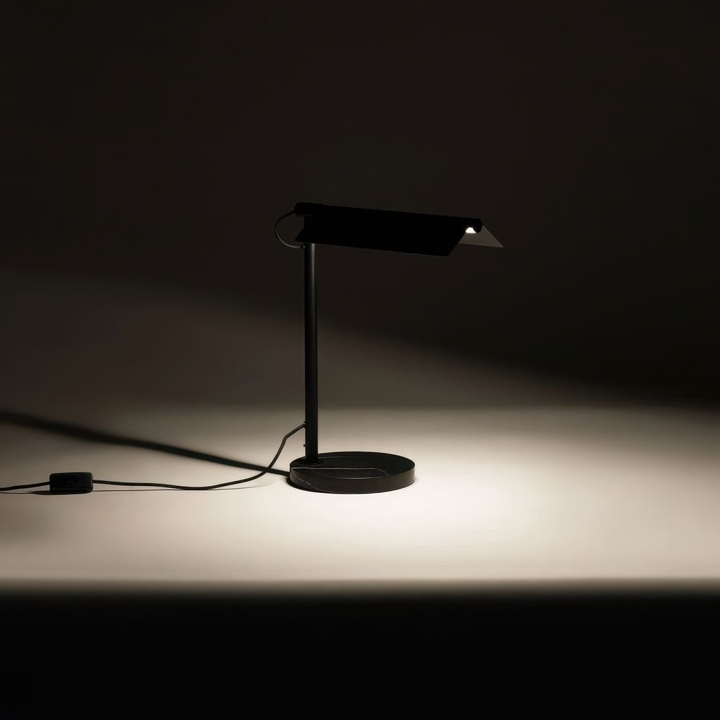 Idéale pour tout bureau ou commode, cette lampe est offerte avec un fini en aluminium argent, aluminium noir ou laiton.