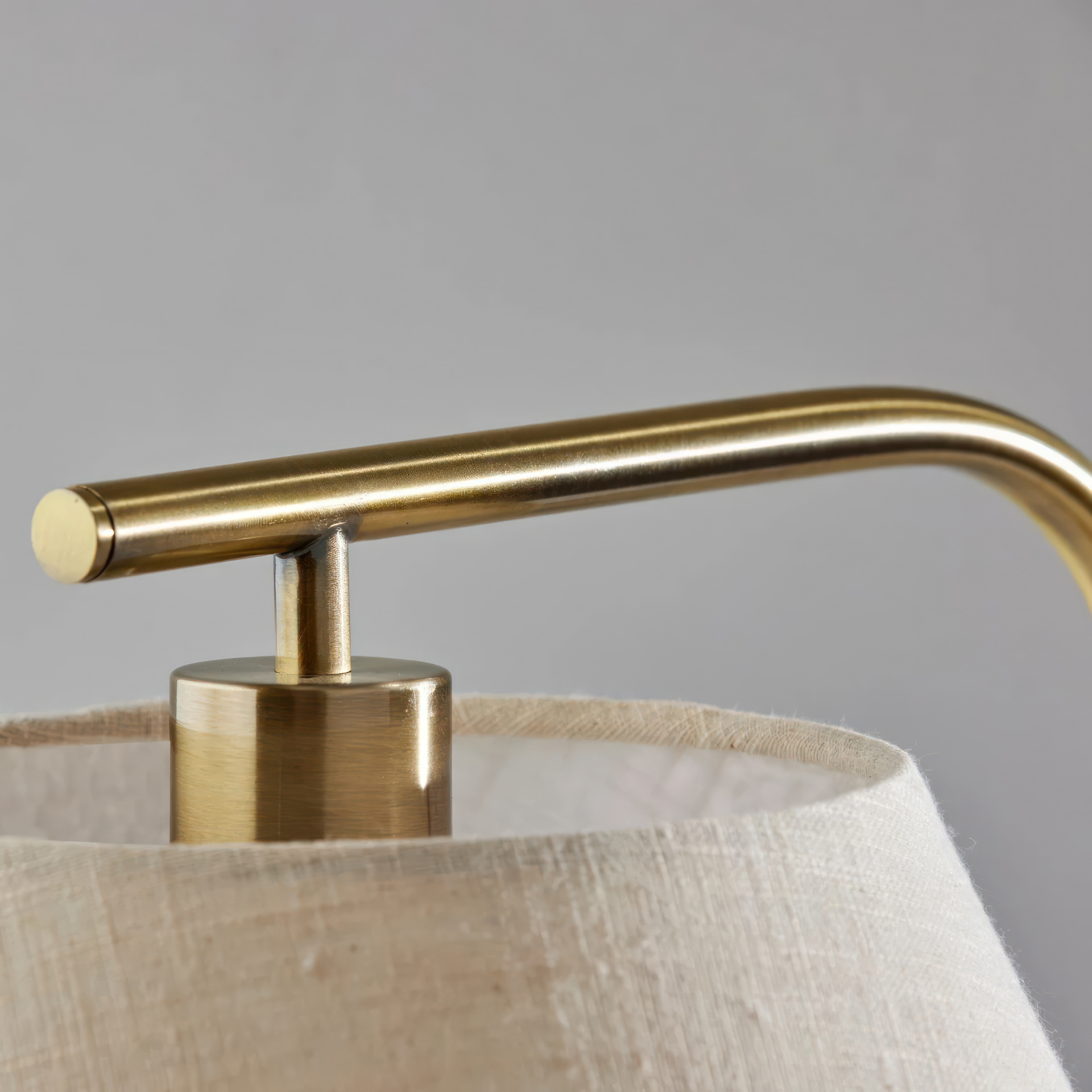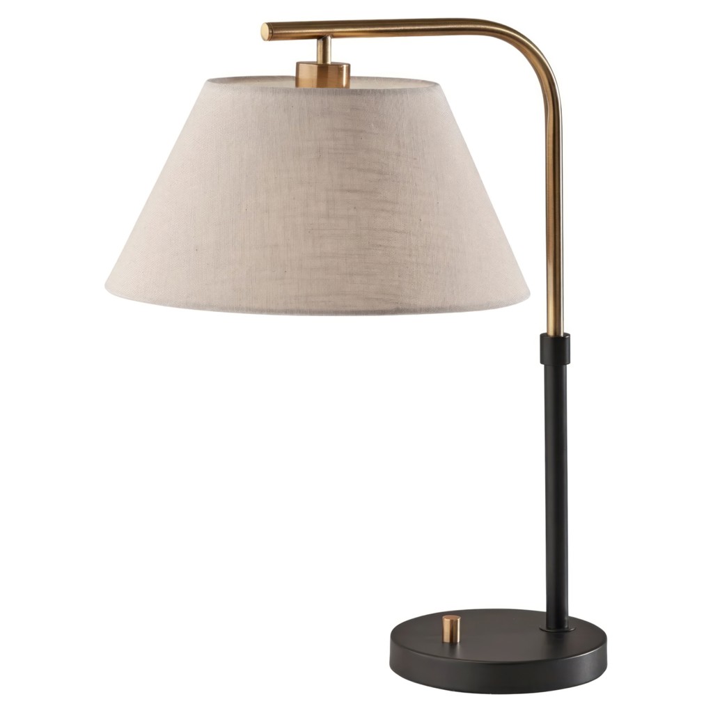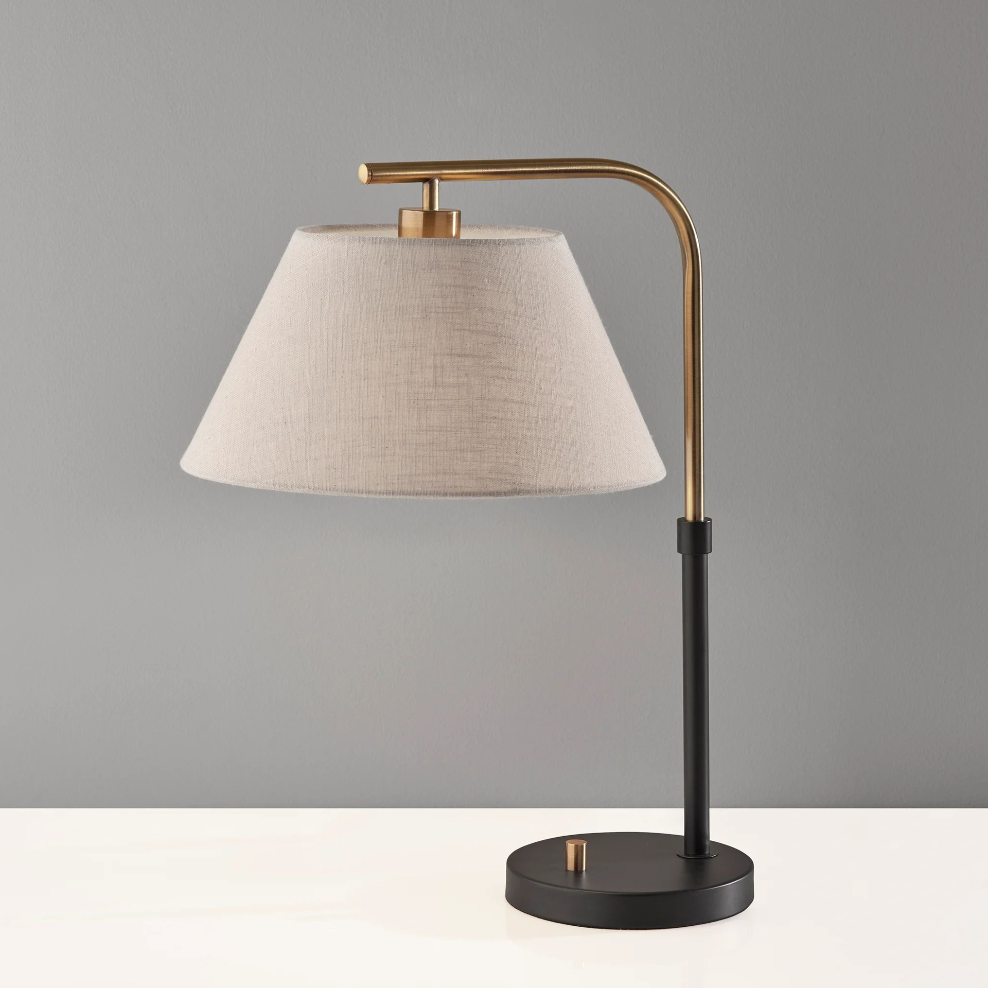 La lampe de table Fletcher, une représentation du style mid-century avec un mélange captivant de finitions métalliques noires et laitonnées.