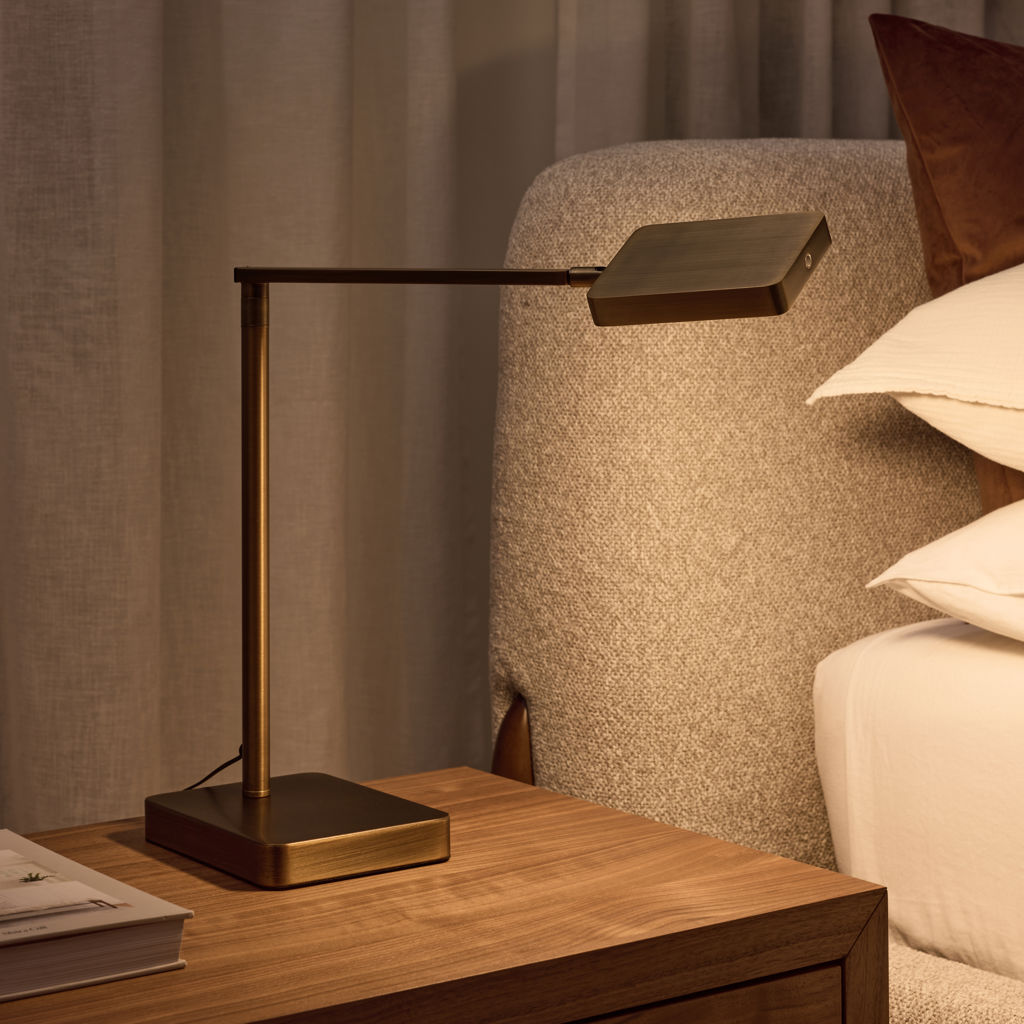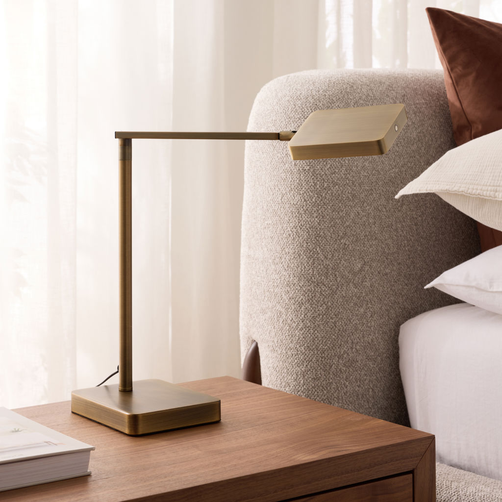 La lampe de table DEL à bras horizontal est un classique intemporel offrant un confort d'éclairage maximal.