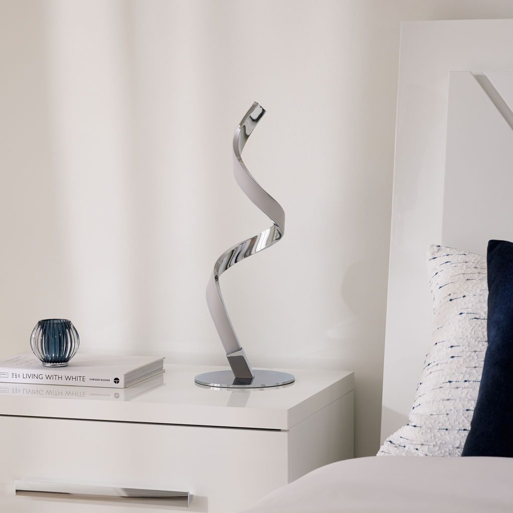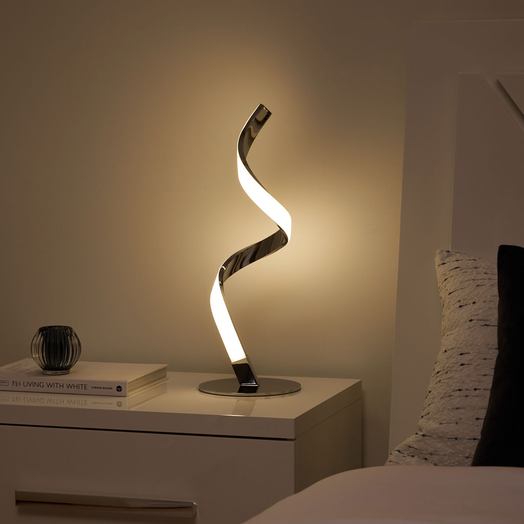 Lampe de table DEL moderne à intensité variable dans une finition chromée polie ajoutera un nouveau look à n'importe quelle pièce de votre maison.