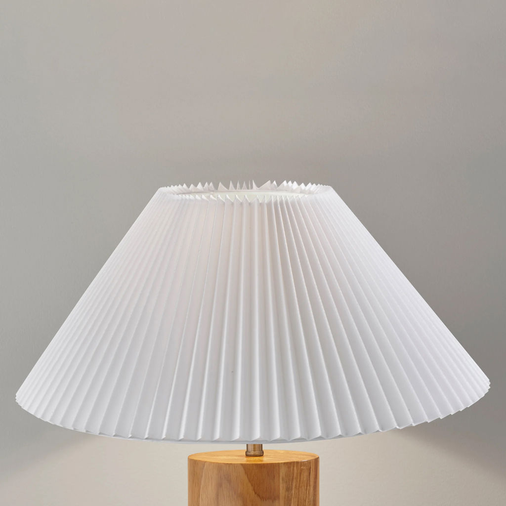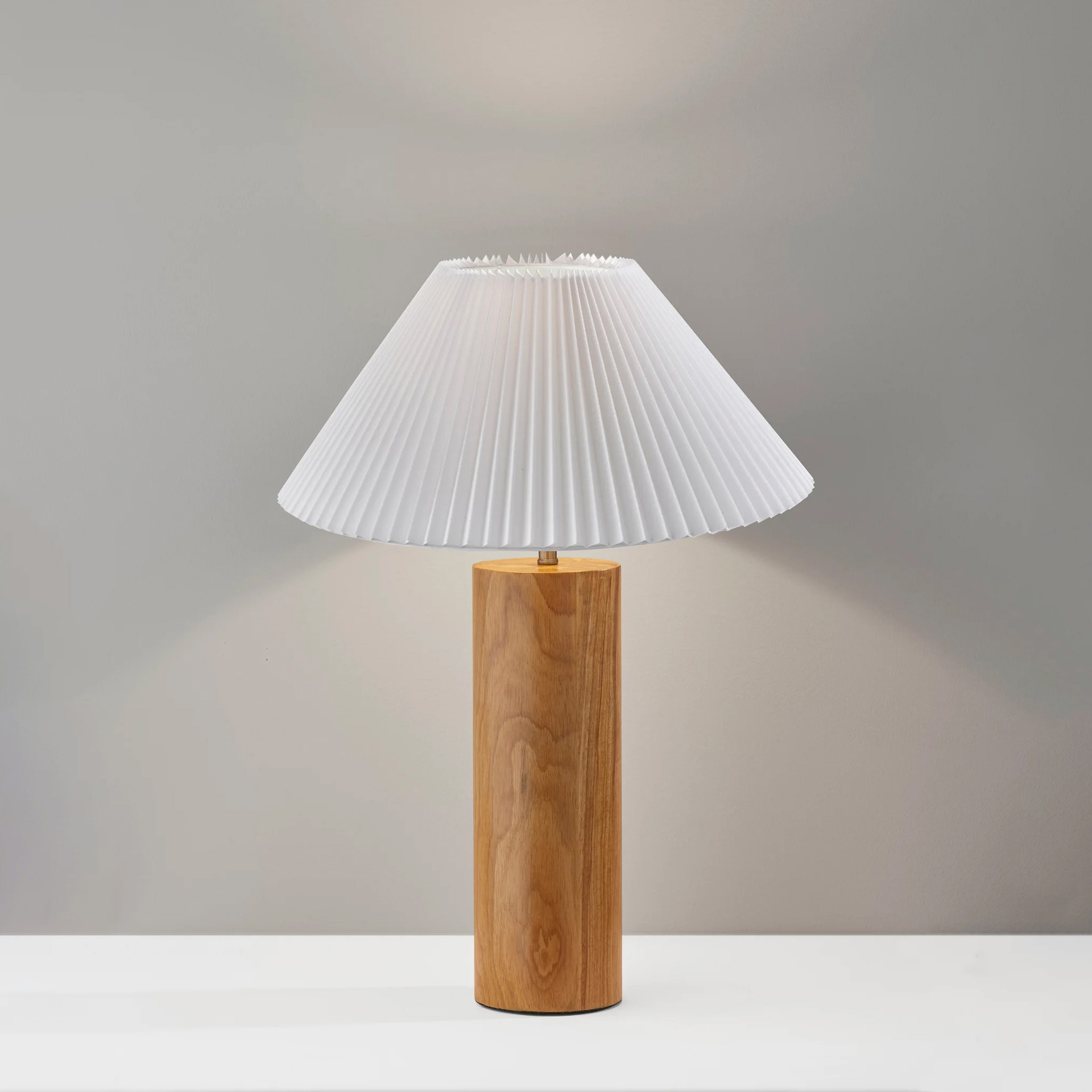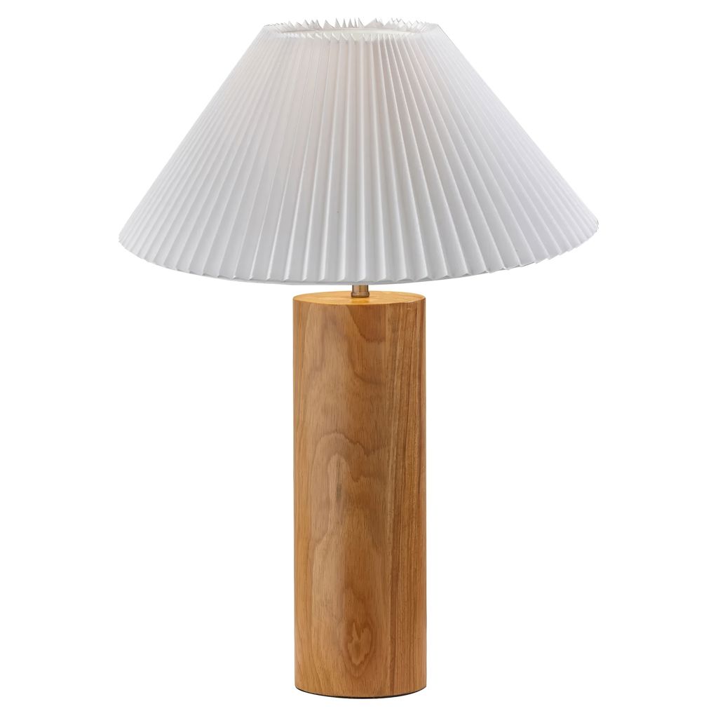 Illuminez votre environnement avec la lampe de table cylindrique, dotée d'une base en bois naturel élégante et d'un abat-jour en tissu plissé blanc qui dégage un attrait intemporel.