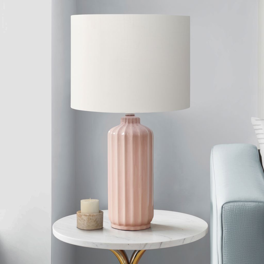 Embélissez votre espace avec cette lampe de table tendance et élégante en céramique rose brillante.