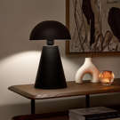 La finition noire mate uniforme souligne la pureté des volumes et crée une présence monolithique apaisante. Le diffuseur hémisphérique dirige la lumière vers le bas pour un éclairage fonctionnel et atmosphérique qui baigne votre espace d'une lueur chaleureuse et enveloppante.