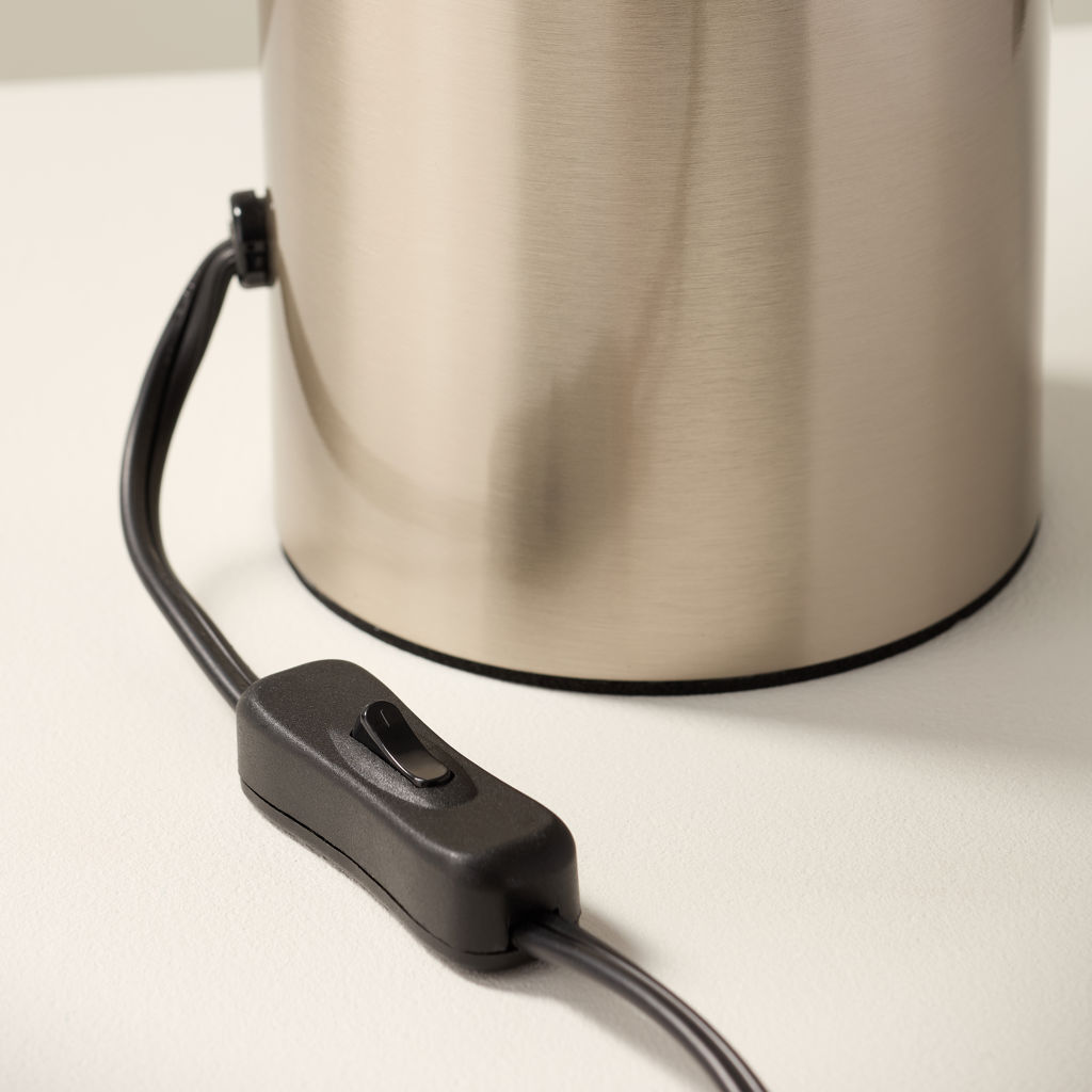 • Lampe de table transitionnelle en métal nickel électrolytique, avec 2 ampoules, culot E12, 60 W max.