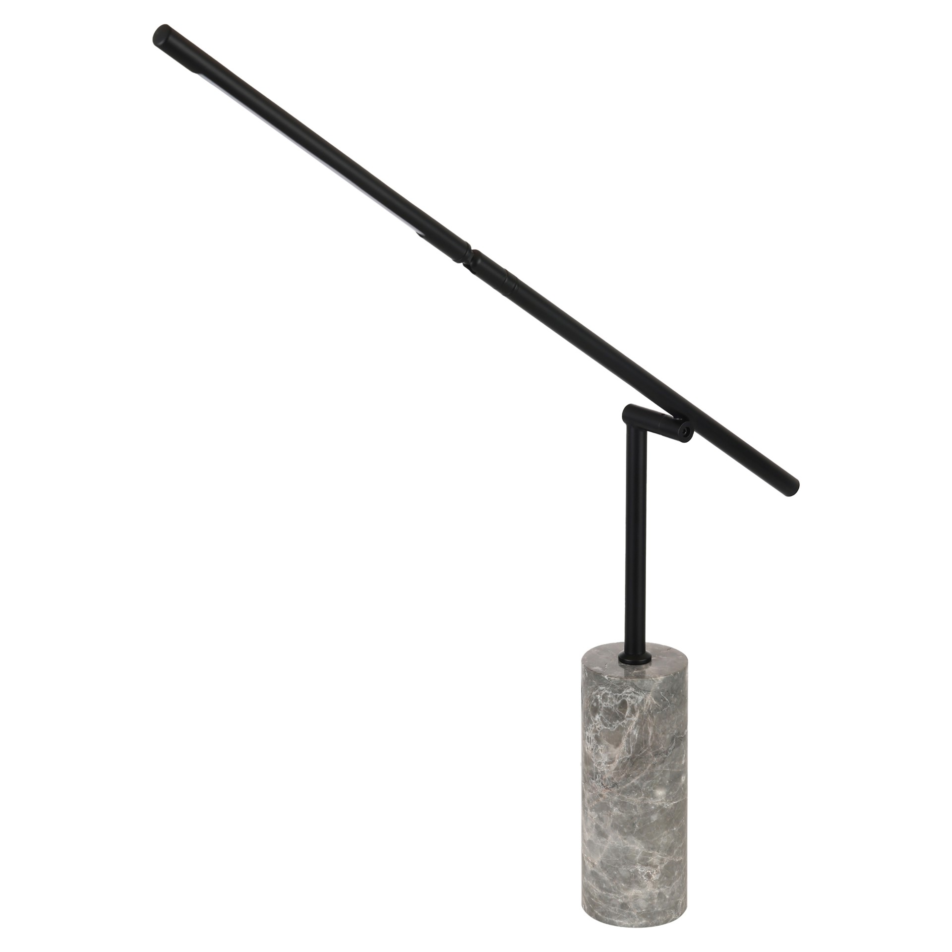 Cette lampe de table est une pièce audacieuse qui associe la structure industrielle à l'élégance naturelle et à la technologie moderne. Le bras en porte-à-faux crée un arc dramatique, étendant la lumière au-dessus d'un coin salon ou d'un espace de travail.