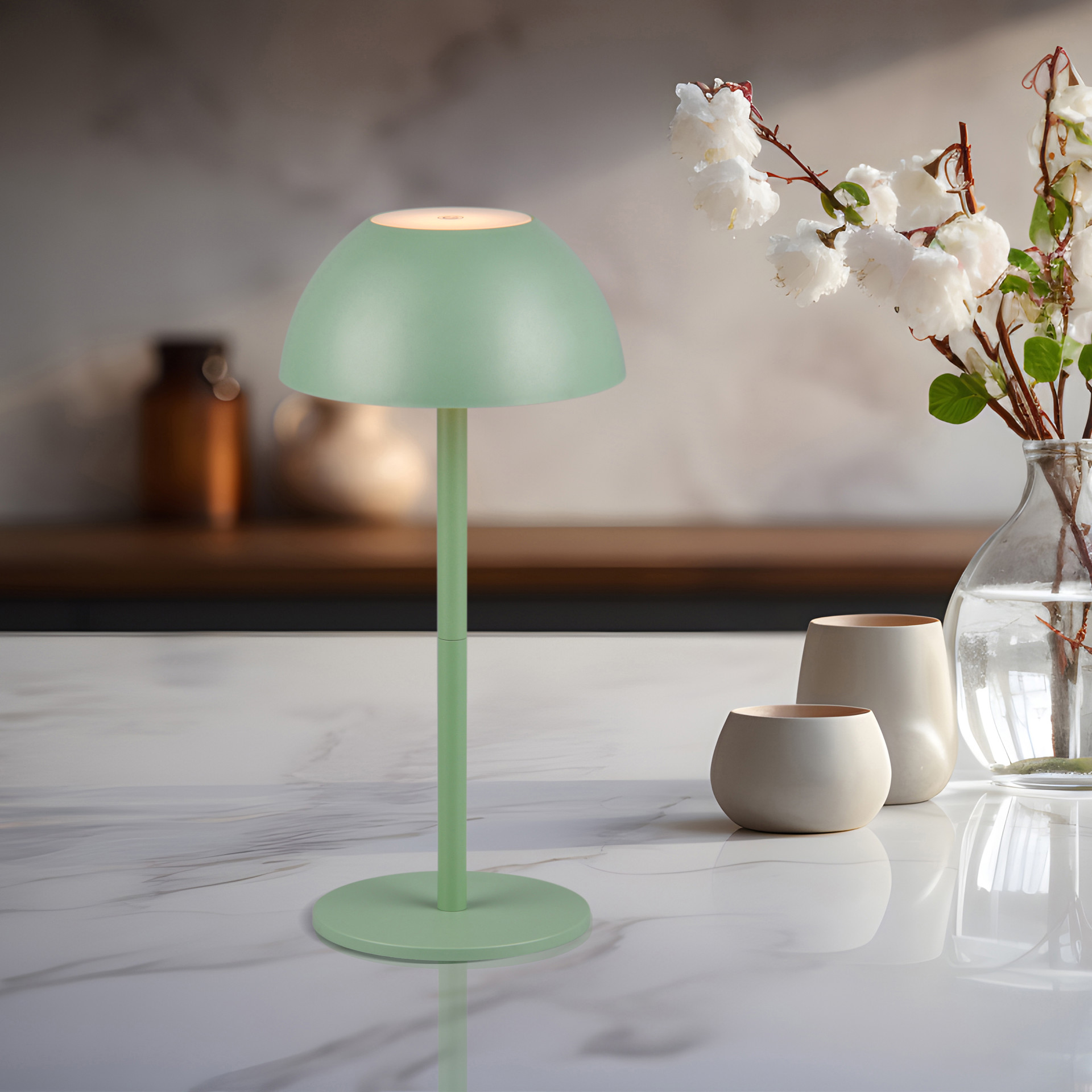 Cette lampe rechargeable séduit par son design moderne et minimaliste avec une finition verte mate, qui s´intègre parfaitement dans tous les styles d´intérieur comme d´extérieur.