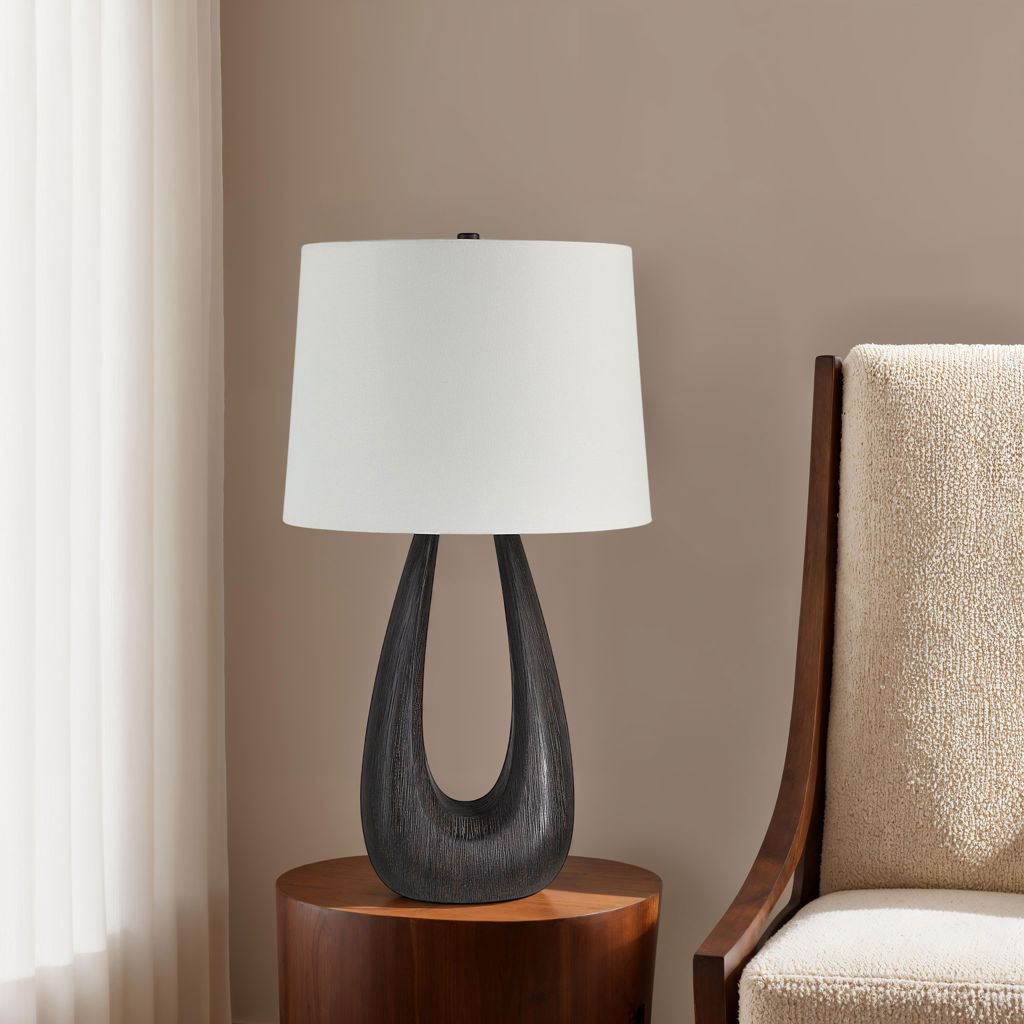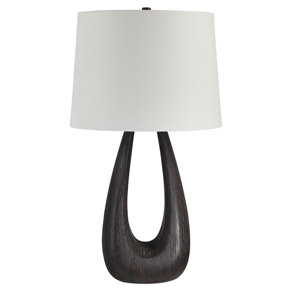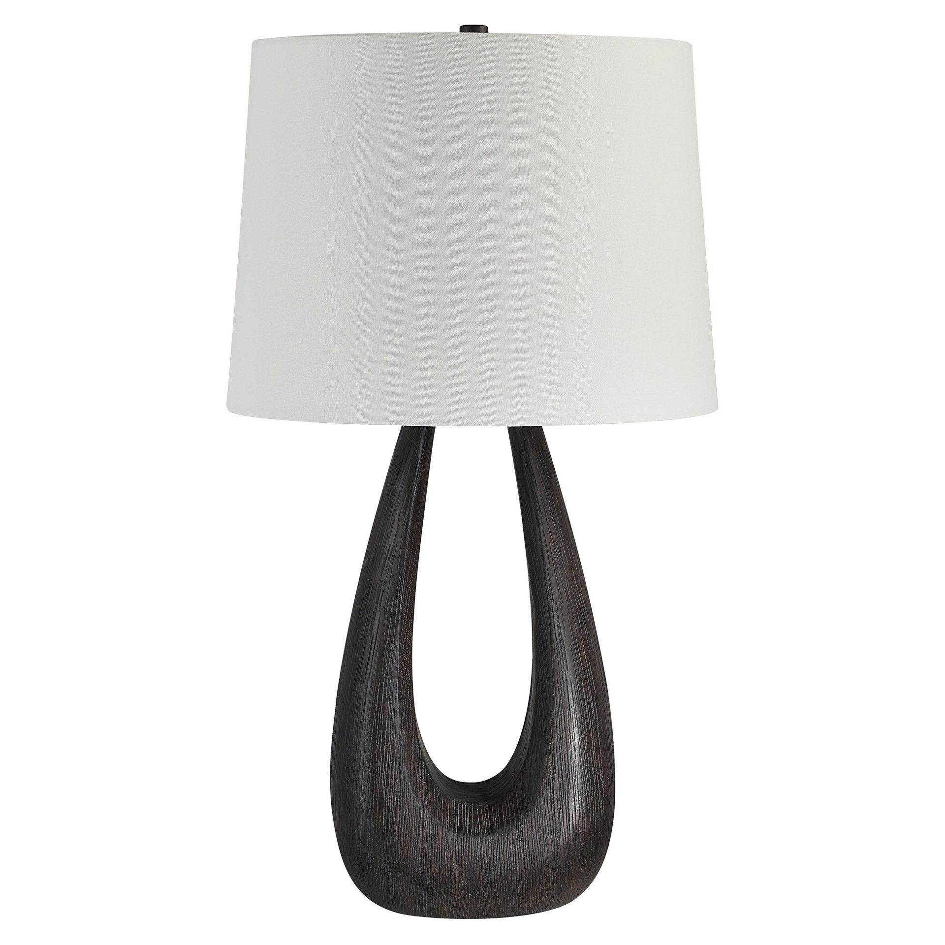 Cette lampe de table apporte une touche sculpturale étonnante à votre intérieur. Fabriquée avec un corps en fer peint en noyer foncé, elle a un aspect artisanal qui rehaussera la pièce sans effort. L'abat-jour tambour conique en lin ivoire est en parfait contraste et filtre la lumière dans tout l'espace.
