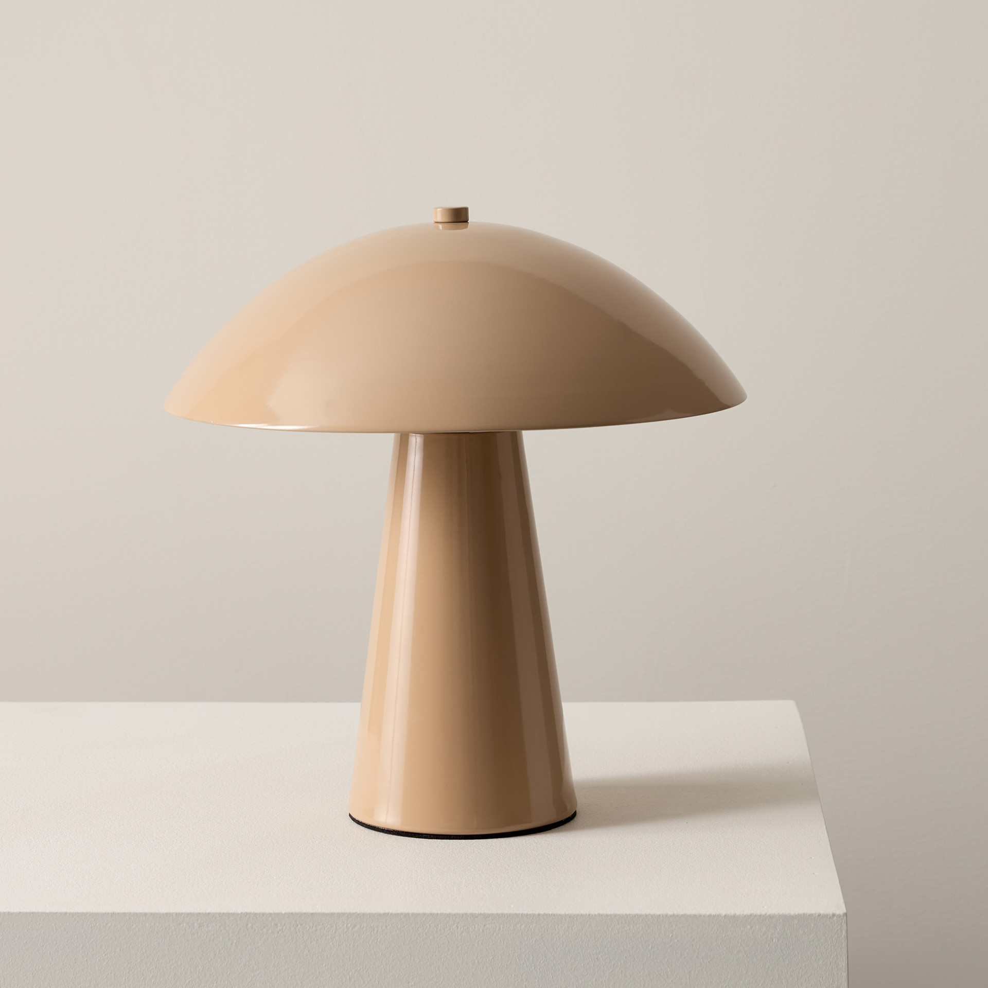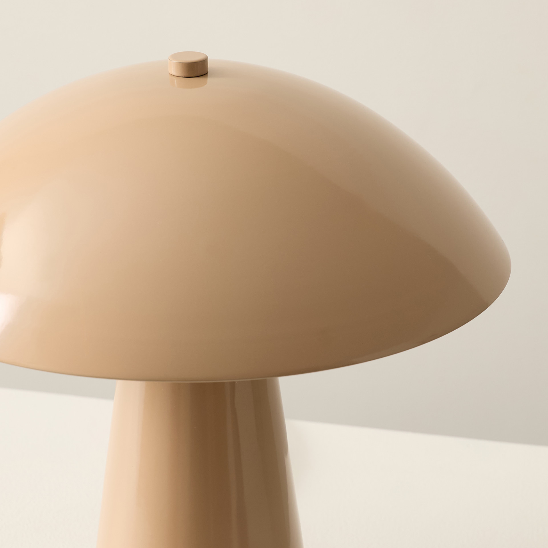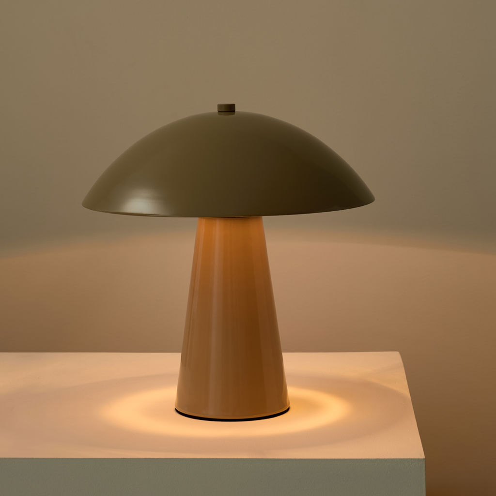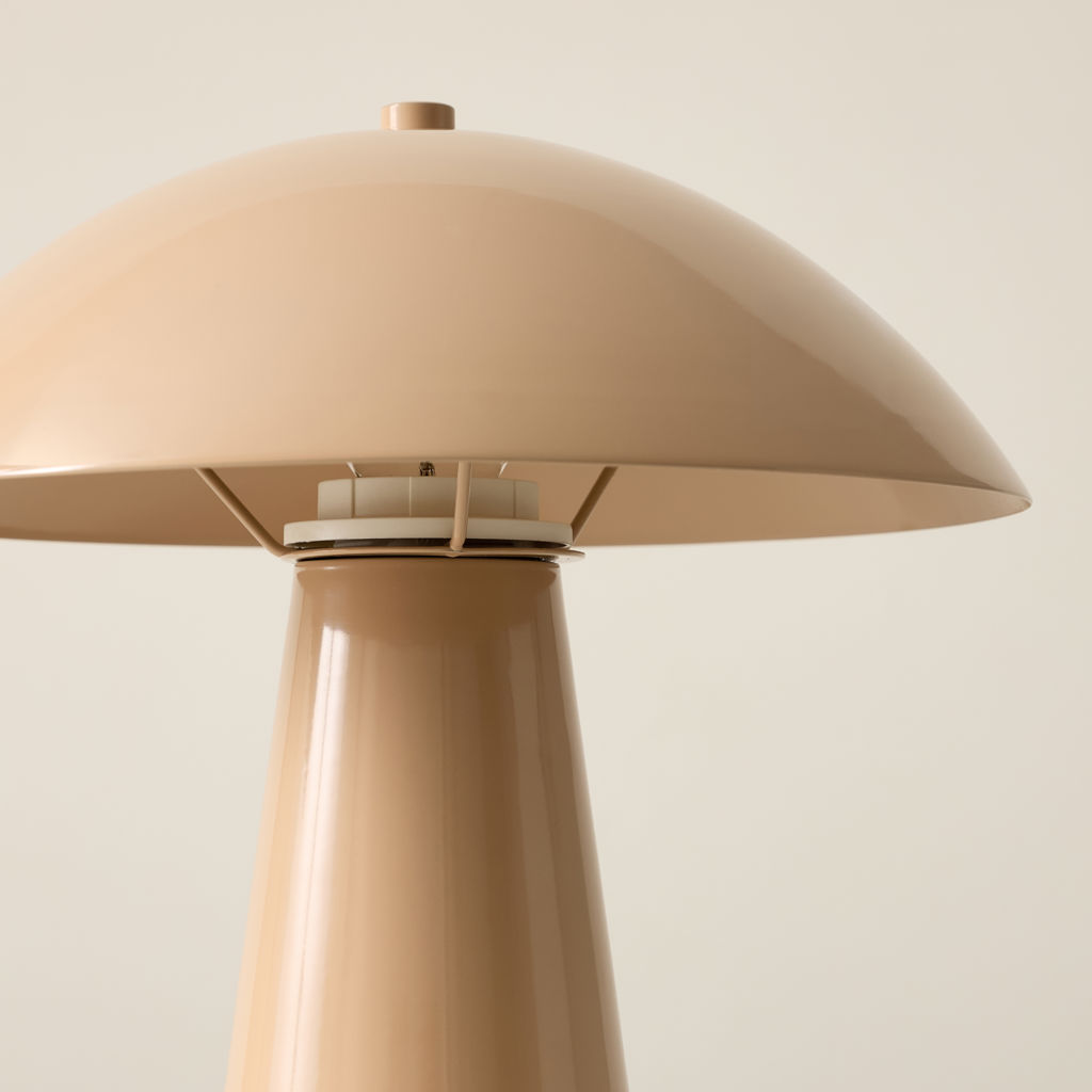 Son pied conique et son abat-jour en forme de dôme, inspirés de la forme d'un champignon, diffusent une lumière douce et agréable.