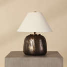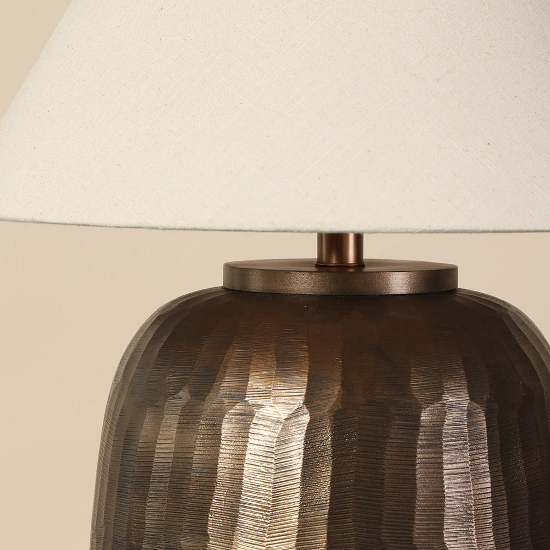 Surmontée d'un abat-jour conique en lin, elle apporte une présence apaisante aux tables d'appoint, consoles ou coins lecture.