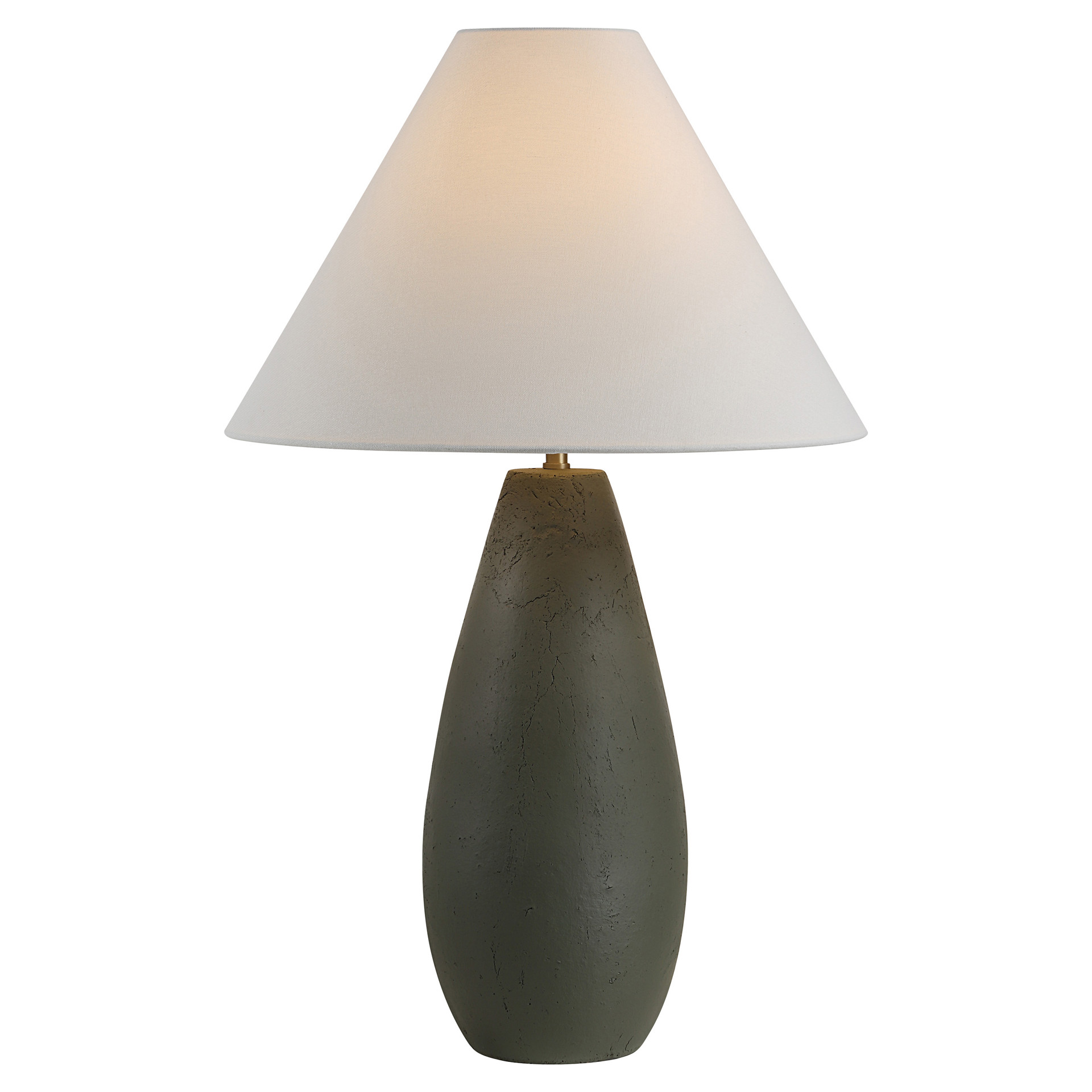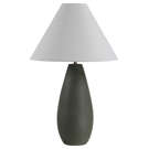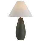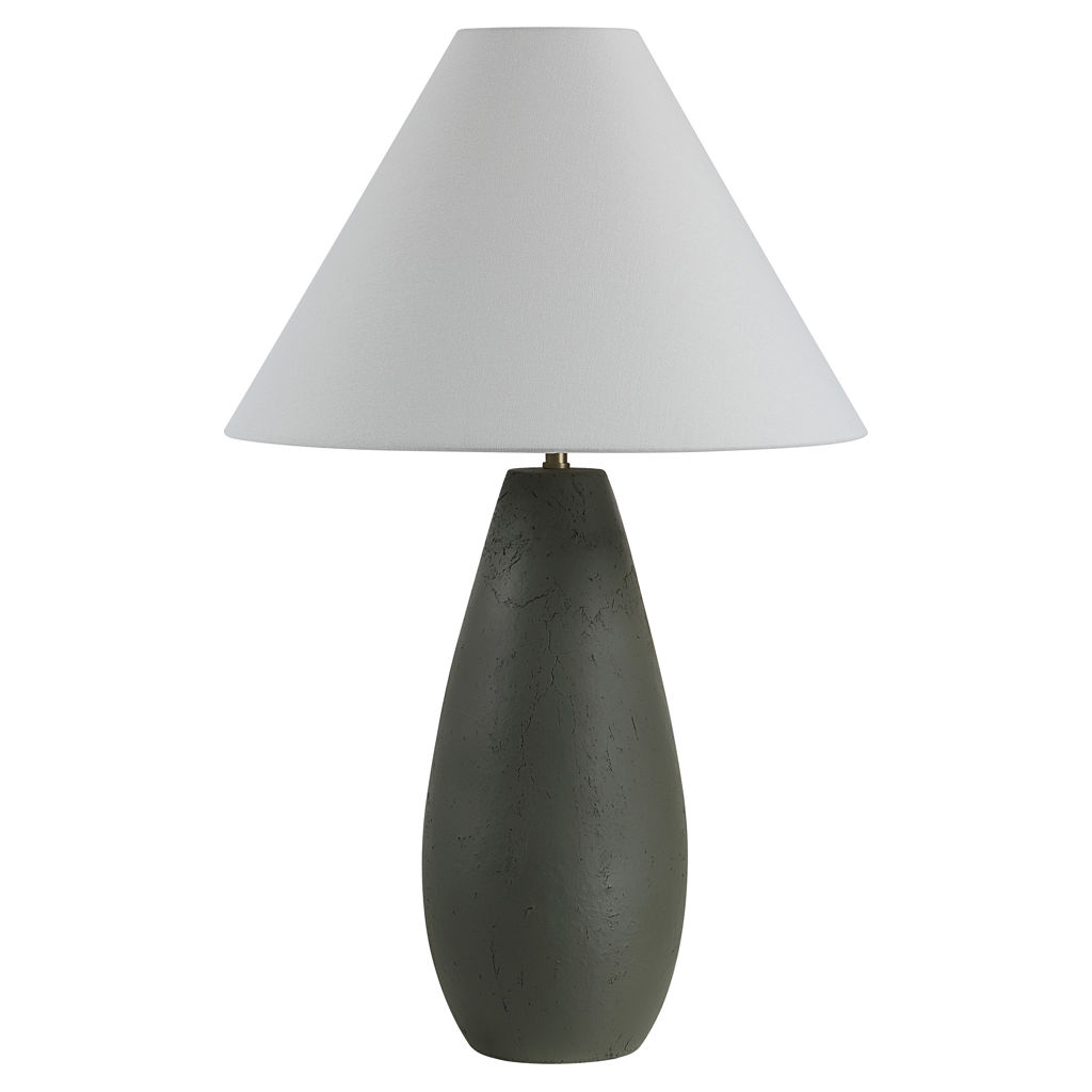 Cette lampe de table en céramique olive foncé avec un abat-jour effilé blanc cassé est un excellent choix pour passer au vert !