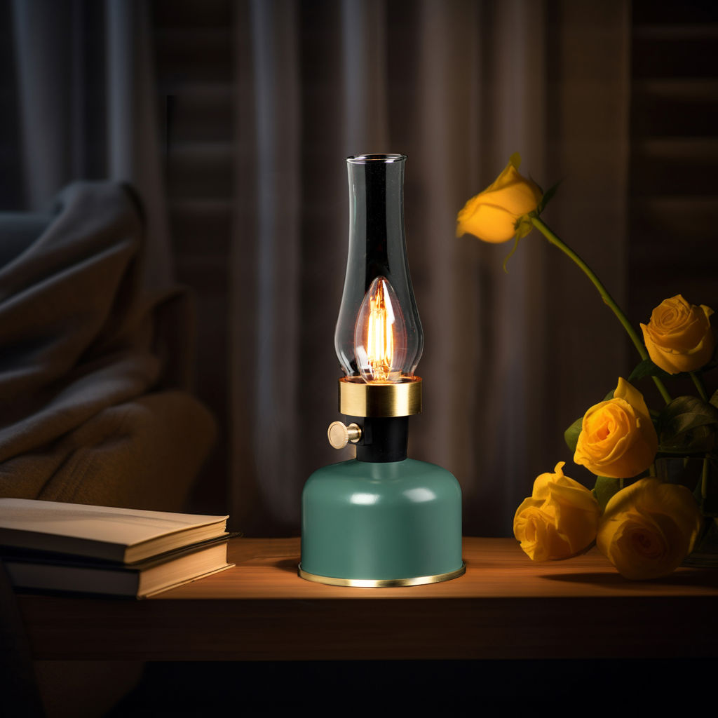Découvrez notre lampe lanterne rétro, dotée d'une cheminée et d'une ampoule à intensité variable.