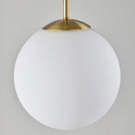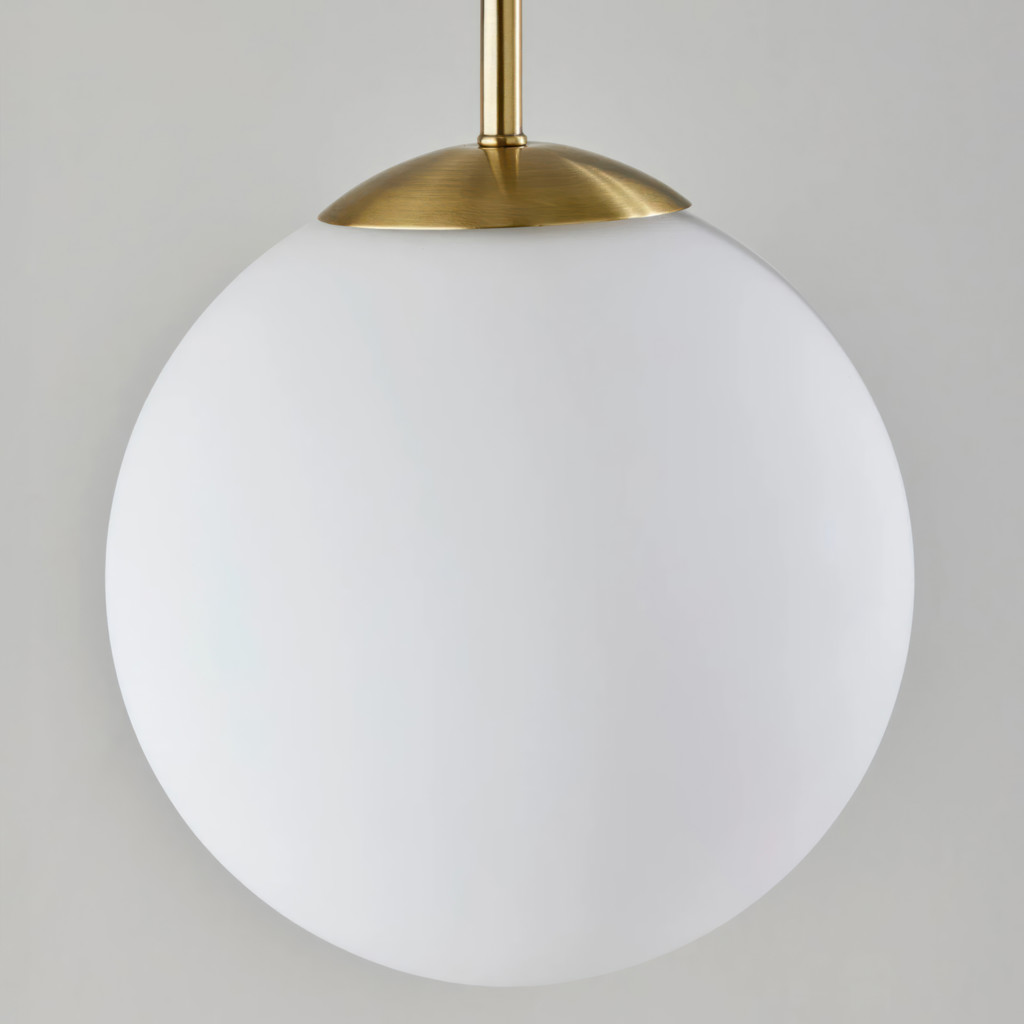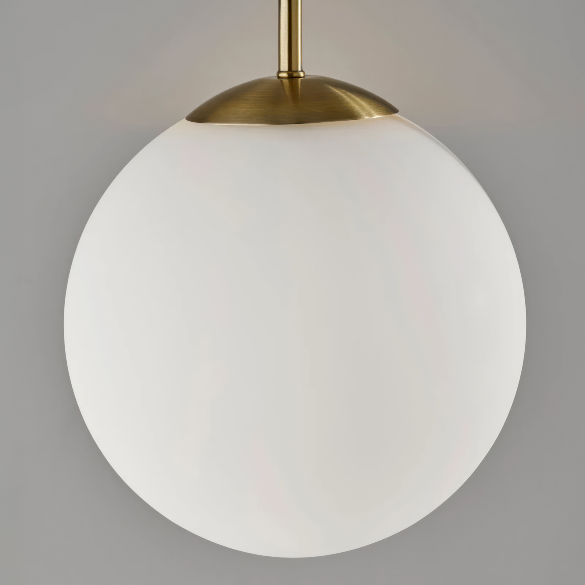 La pièce maîtresse de cette lampe est son abat-jour en forme de globe en verre blanc mat, qui diffuse une lumière douce et accueillante.