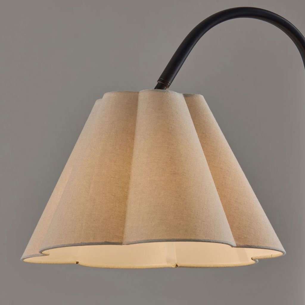 Une fusion élégante de design moderne et d'élégance douce. Doté d'une finition noire élégante et d'un abat-jour en lin avoine magnifiquement festonné, ce lampadaire apporte une touche de raffinement à n'importe quelle pièce.