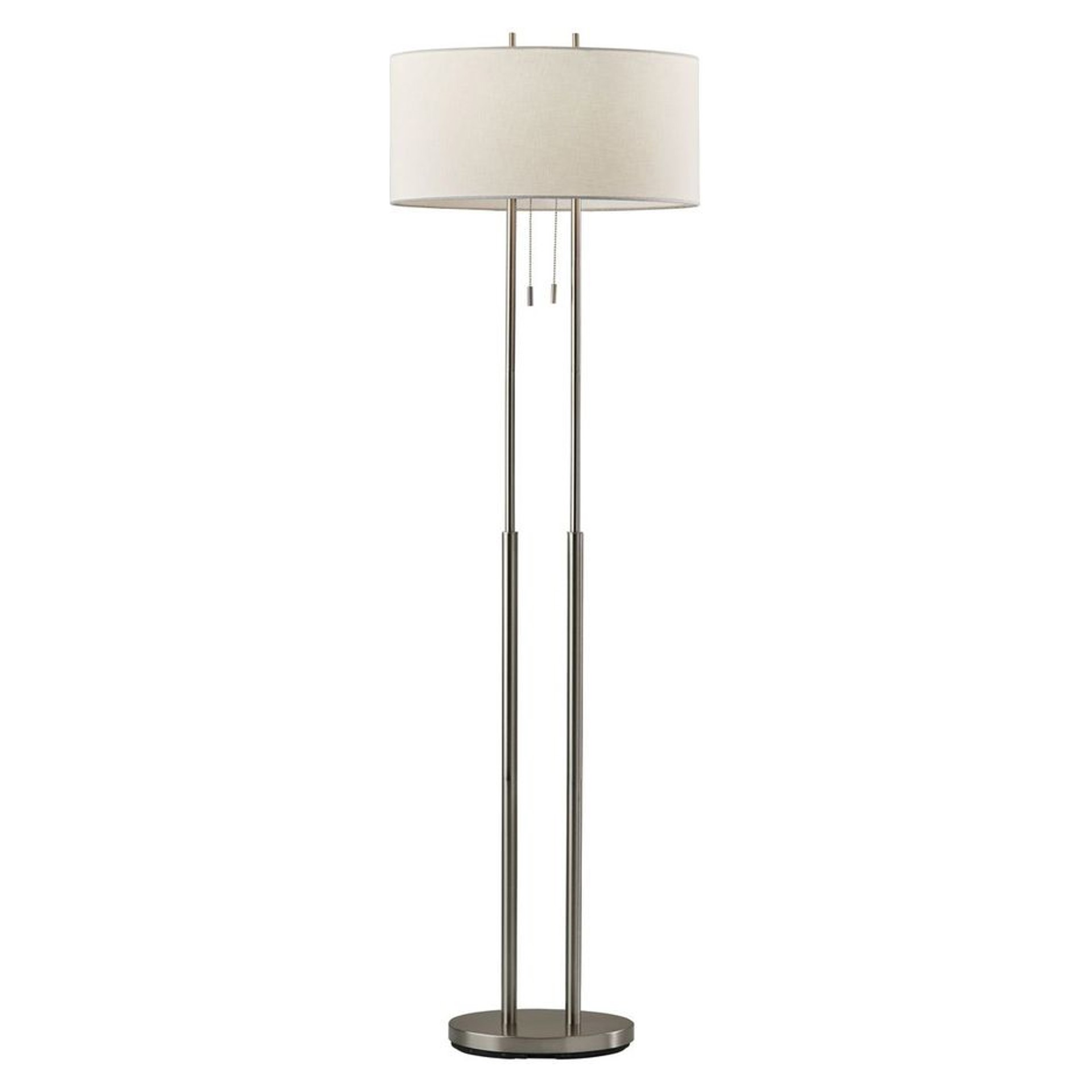 Une combinaison contemporaine classique d'acier brossé et d'ivoire fait de cette lampe sur pied un complément parfait pour une chambre ou un espace de vie moderne ou de style transitionnel.