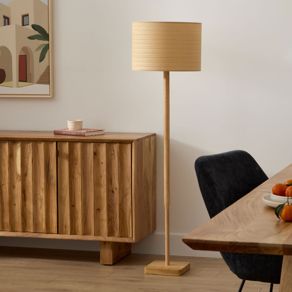 Illuminez votre espace avec les lignes épurées, la palette de couleurs monochromes et les matériaux naturels du lampadaire Ellis.