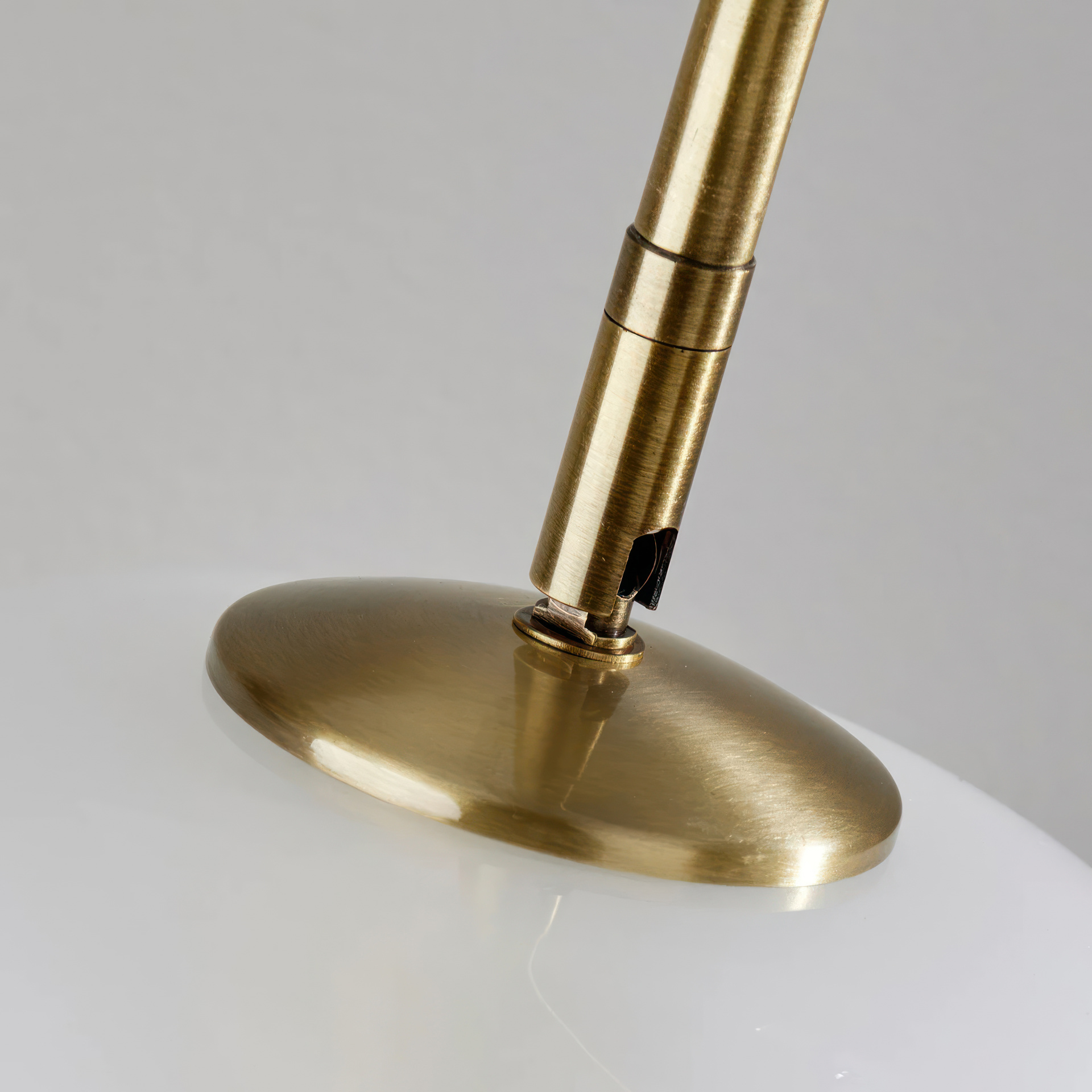 Son abat-jour en verre est une étude de contraste, avec un extérieur blanc brillant pour une touche contemporaine, tandis que l'intérieur givré diffuse une lumière douce et invitante.