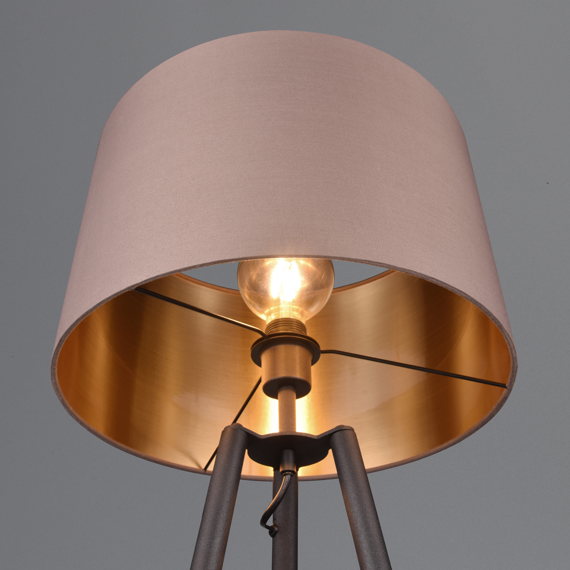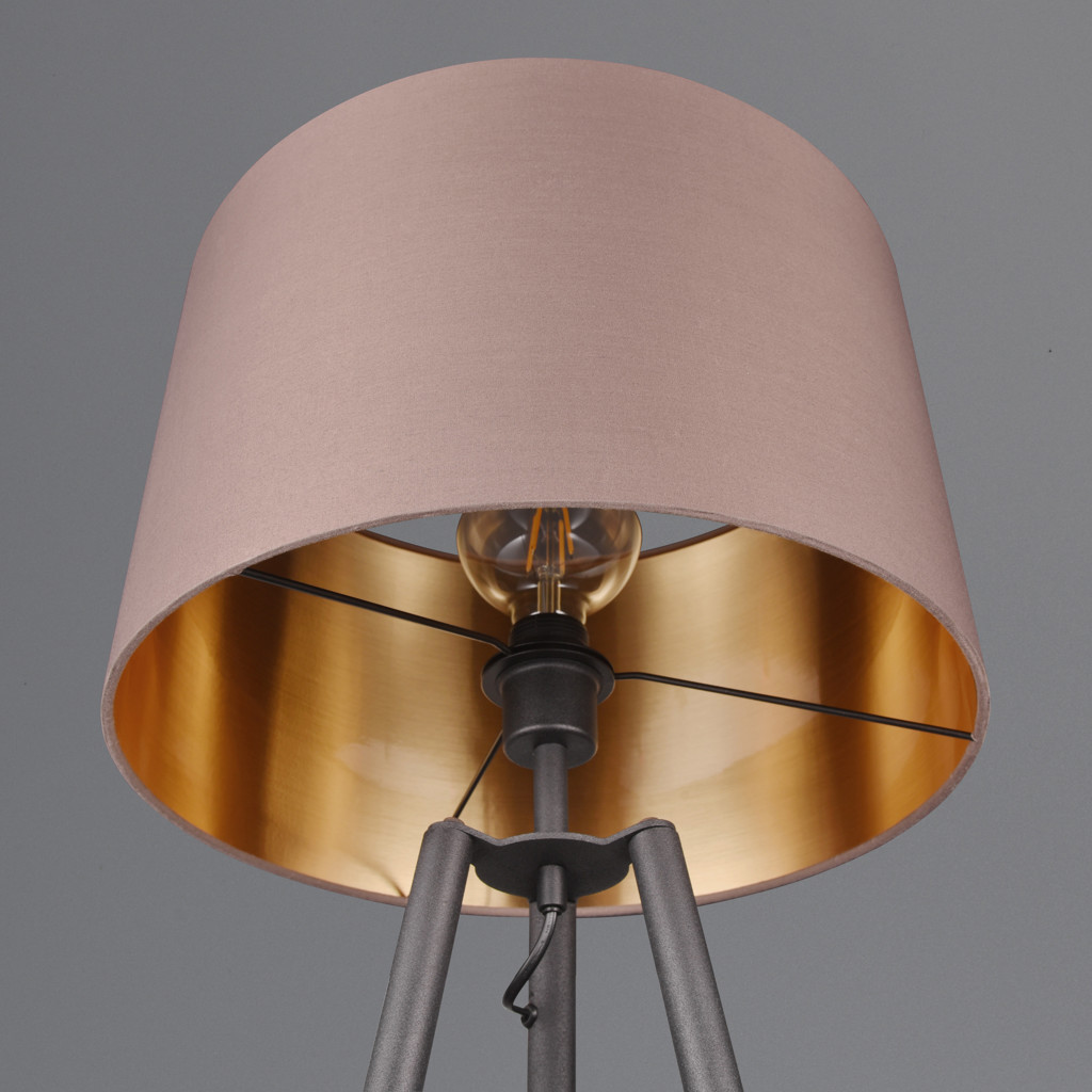 Avec son élégant abat-jour en tissu, le lampadaire à trois pieds crée un îlot de lumière confortable qui invite à s'attarder.