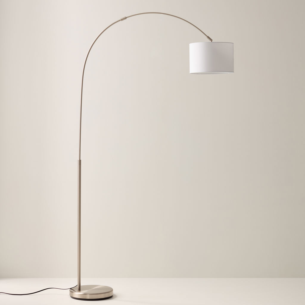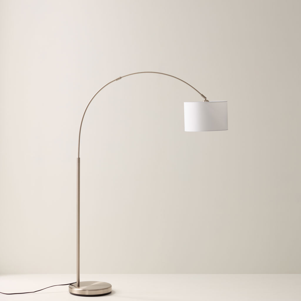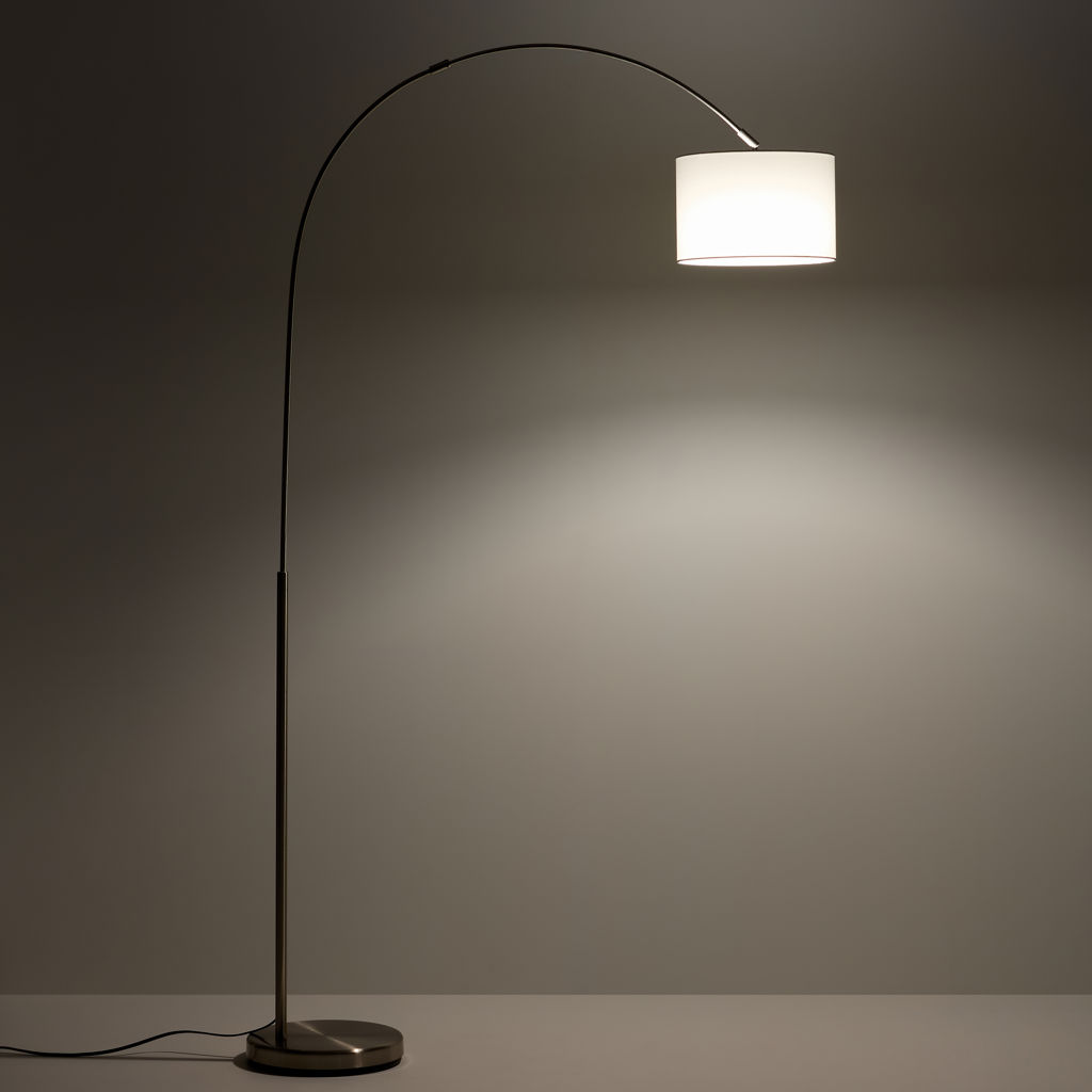 Le lampadaire arc HOTEL apporte une touche élégante à votre intérieur grâce à son éclairage ciblé et son design aérien. Doté d’une base en nickel et d’un abat-jour blanc en tissu, il incarne une esthétique moderne et intemporelle. Grâce à sa silhouette arquée et son large rayon lumineux, il trouve idéalement sa place près d’un canapé ou dans un coin lecture, pour une lumière douce et non éblouissante.