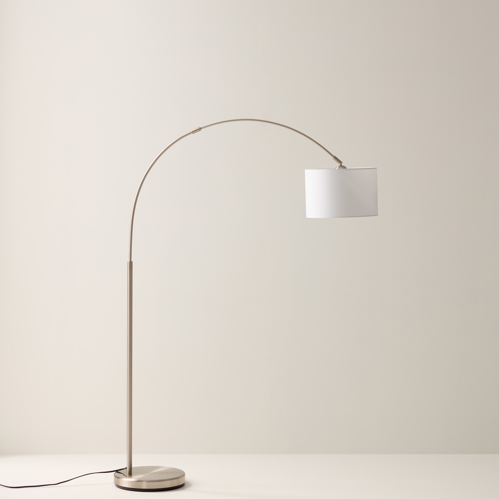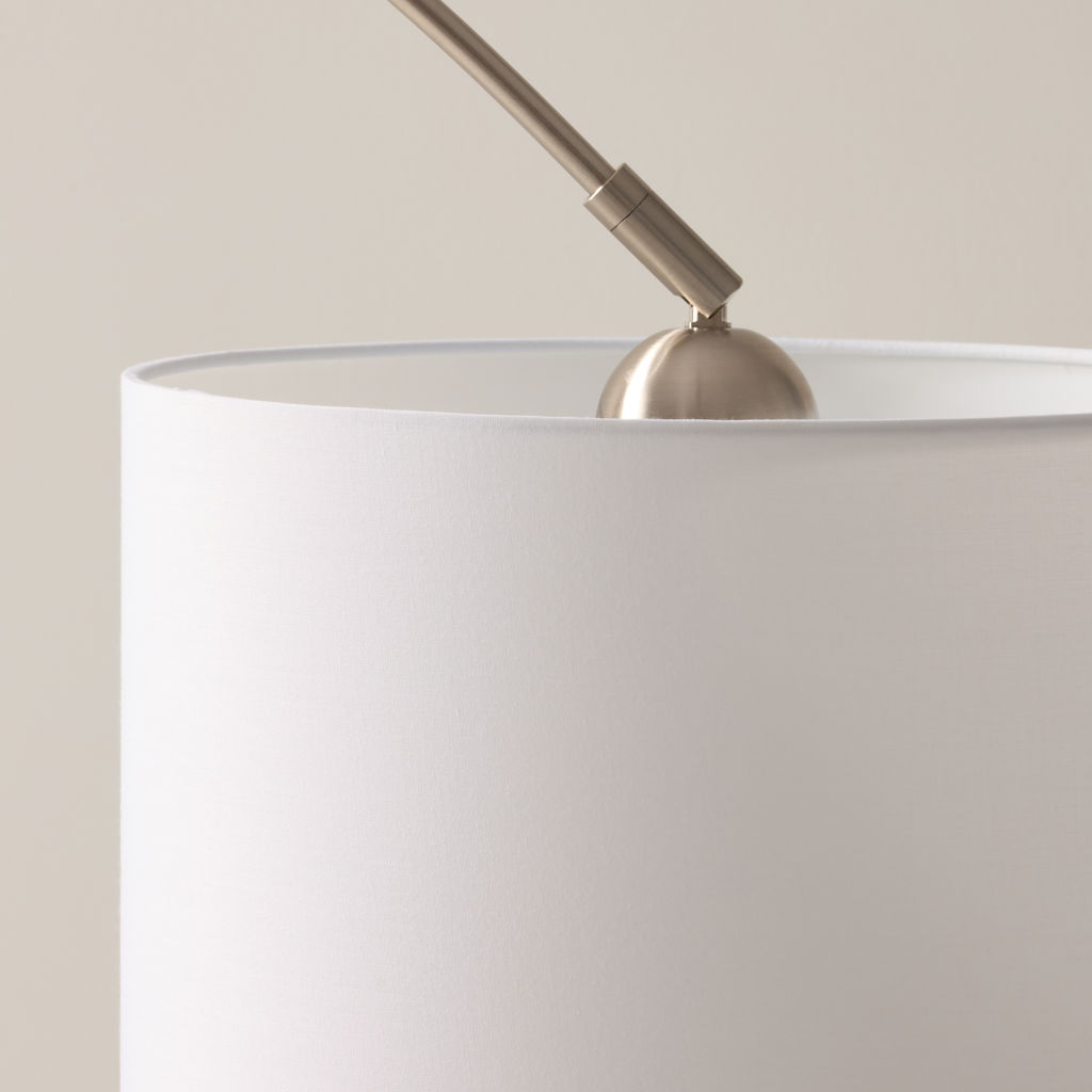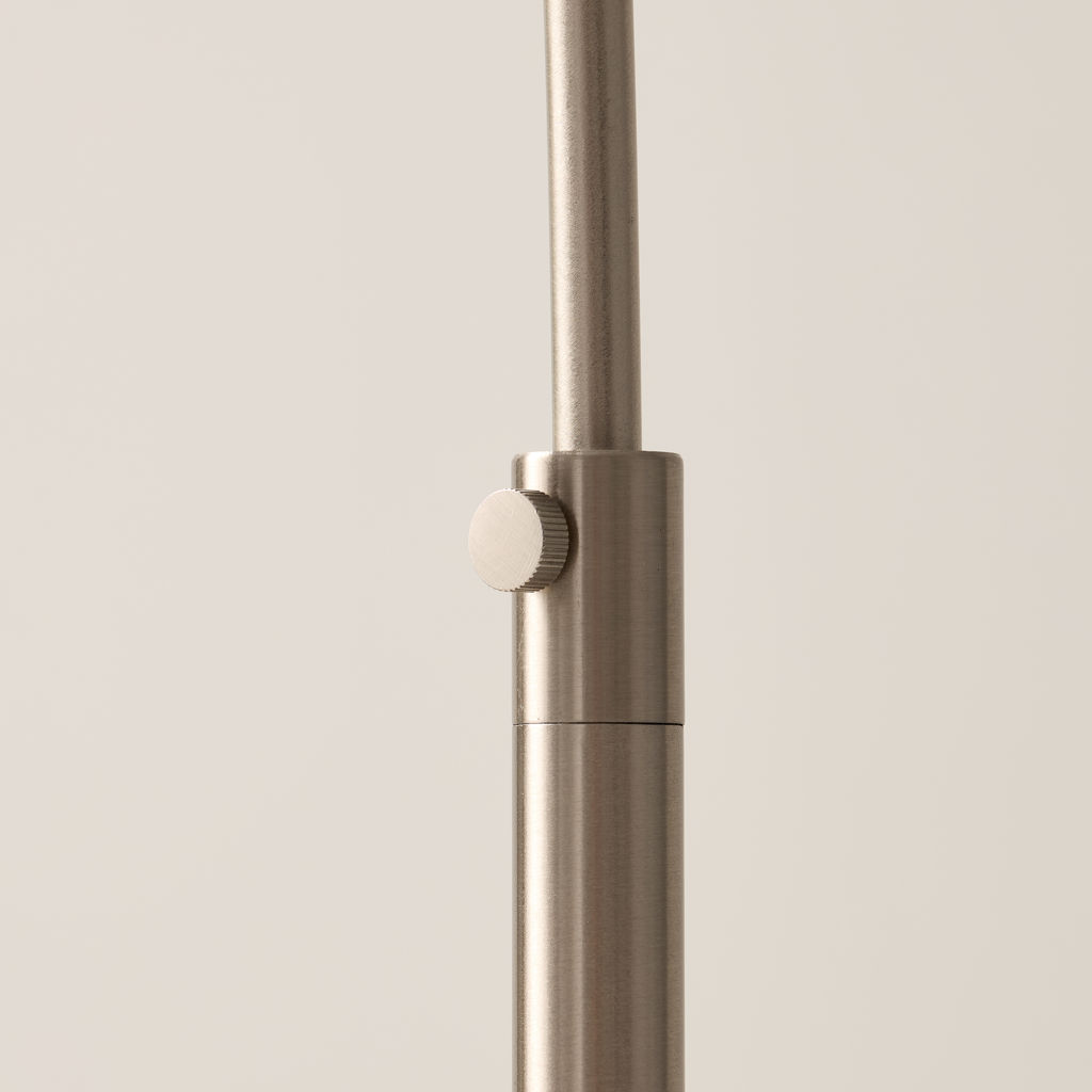 Le lampadaire arc HOTEL apporte une touche élégante à votre intérieur grâce à son éclairage ciblé et son design aérien. Doté d’une base en nickel et d’un abat-jour blanc en tissu, il incarne une esthétique moderne et intemporelle. Grâce à sa silhouette arquée et son large rayon lumineux, il trouve idéalement sa place près d’un canapé ou dans un coin lecture, pour une lumière douce et non éblouissante.