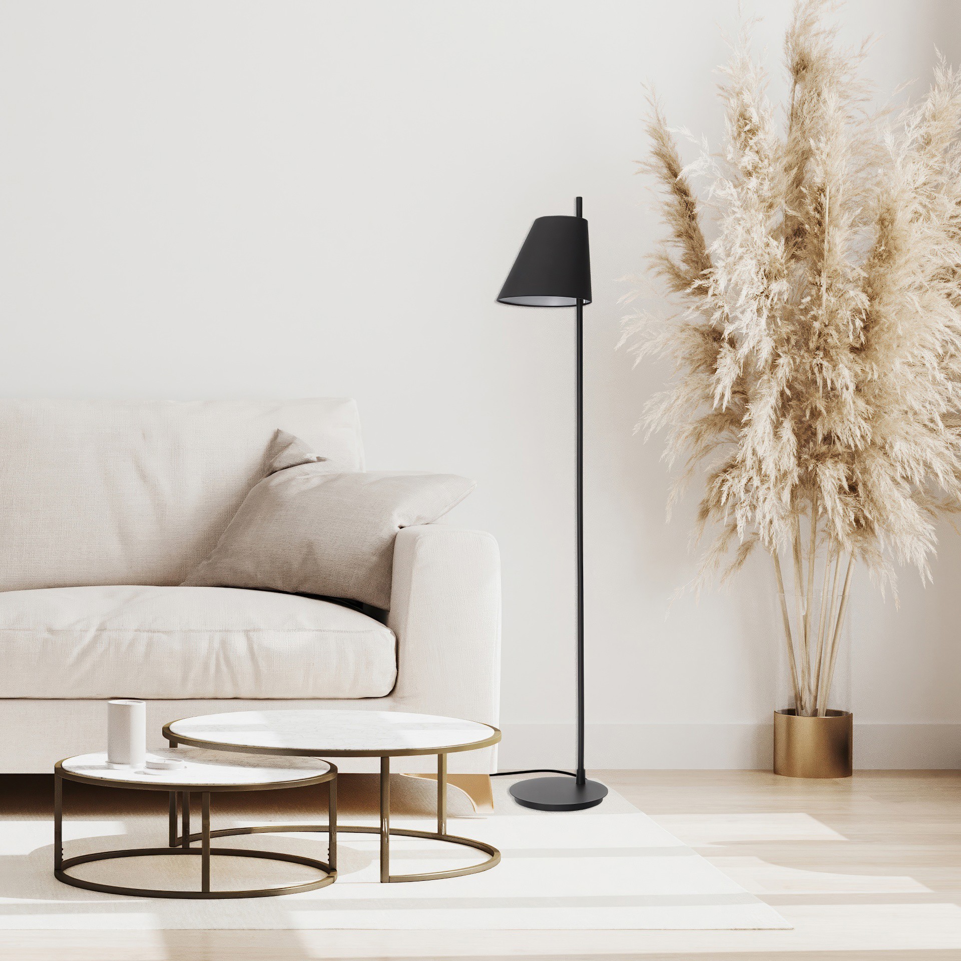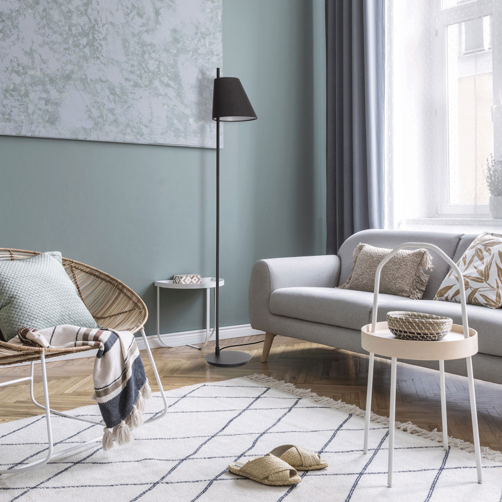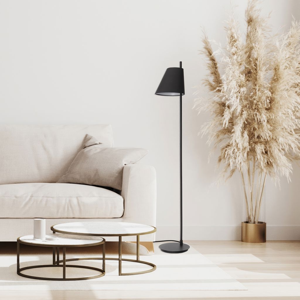 La lampe de plancher Estaziona présente un design minimaliste noir qui s´intègre parfaitement dans un décor moderne.