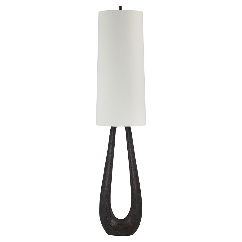 Le lampadaire Cornelia apporte une touche sculpturale étonnante à la maison ou au bureau. Fabriqué avec un corps en fer peint en noyer foncé, il a un aspect artisanal qui rehaussera n'importe quelle pièce.