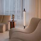 Conçue pour être un élément architectural plutôt qu'un simple ornement, cette lampe présente une lumière DEL linéaire éclairant à l'intérieur d'un tube en verre cristallin.