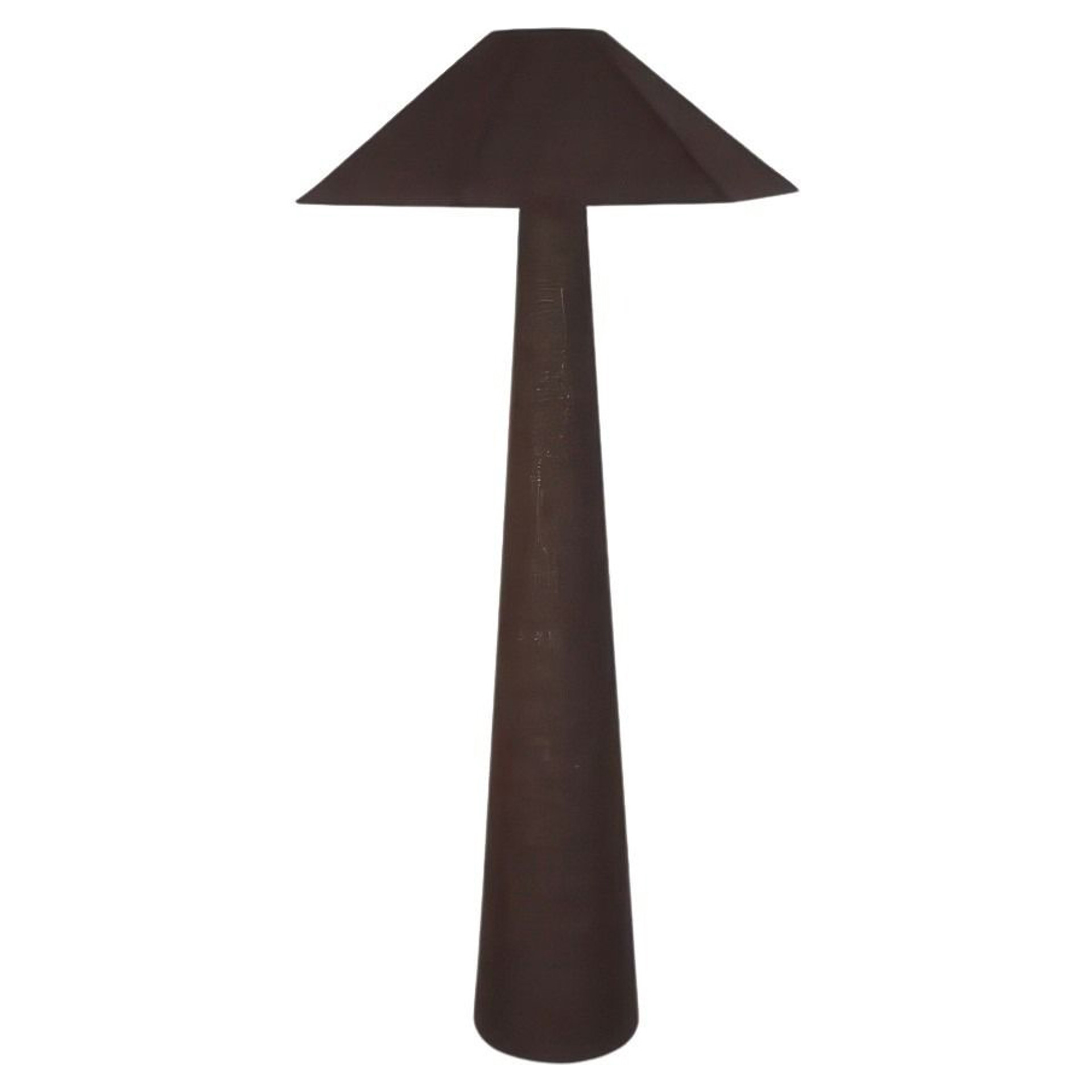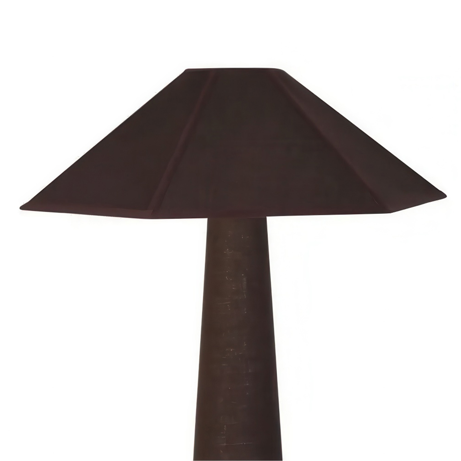 L'abat-jour géométrique et le pied rond créent un équilibre ludique, tandis que les tons riches et la texture subtile lui confèrent un charme vintage.