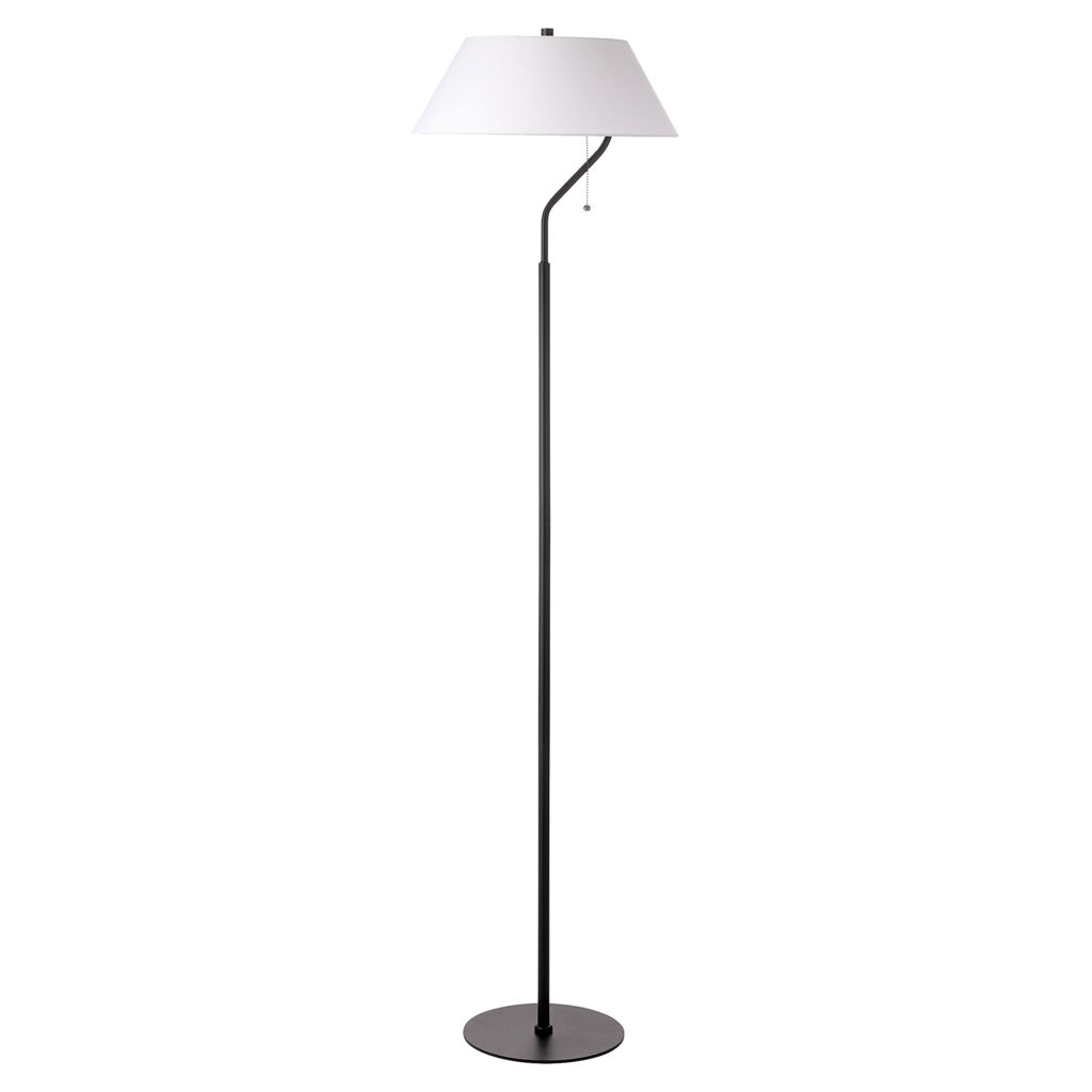 Fabriquée en métal durable avec un fini noir mat raffiné, cette lampe sur pied s'installe facilement et offre un style durable. Inclut une garantie limitée d'un an.