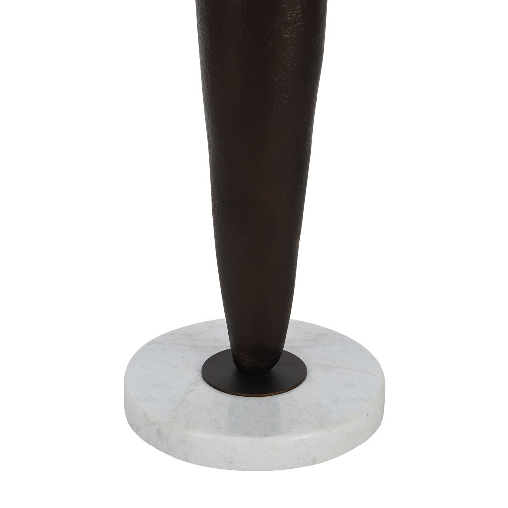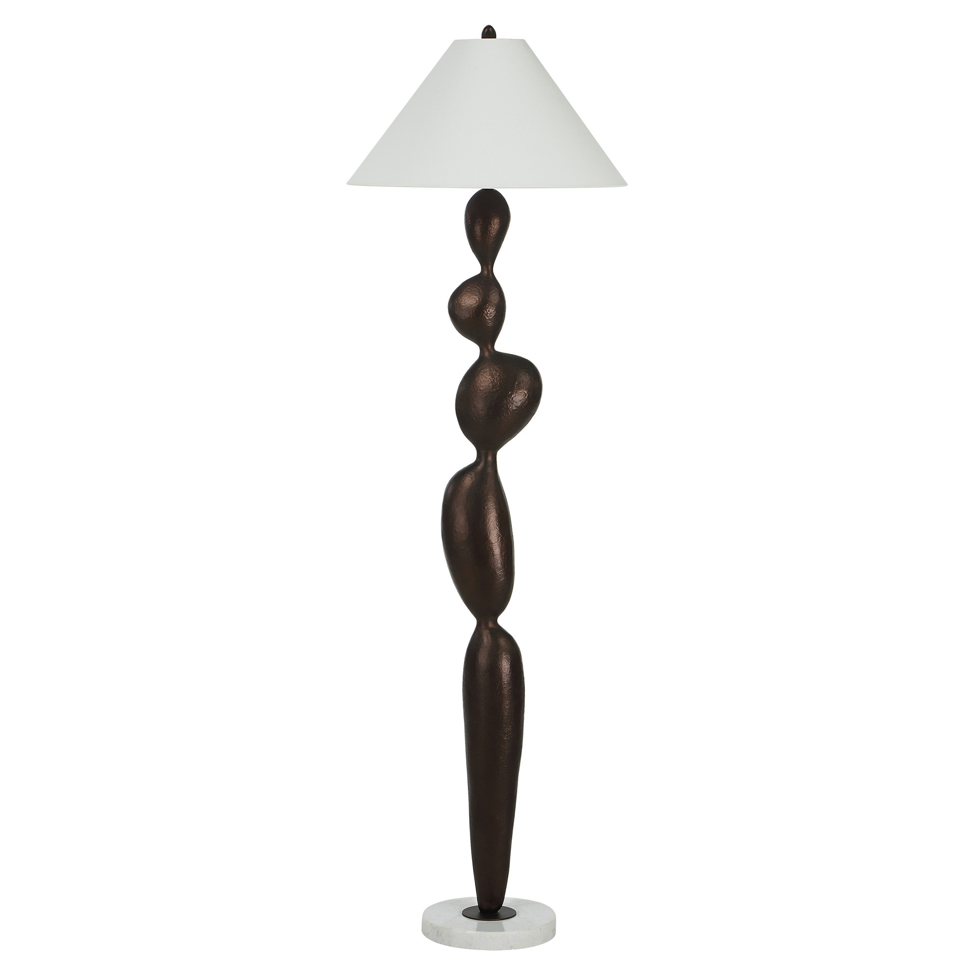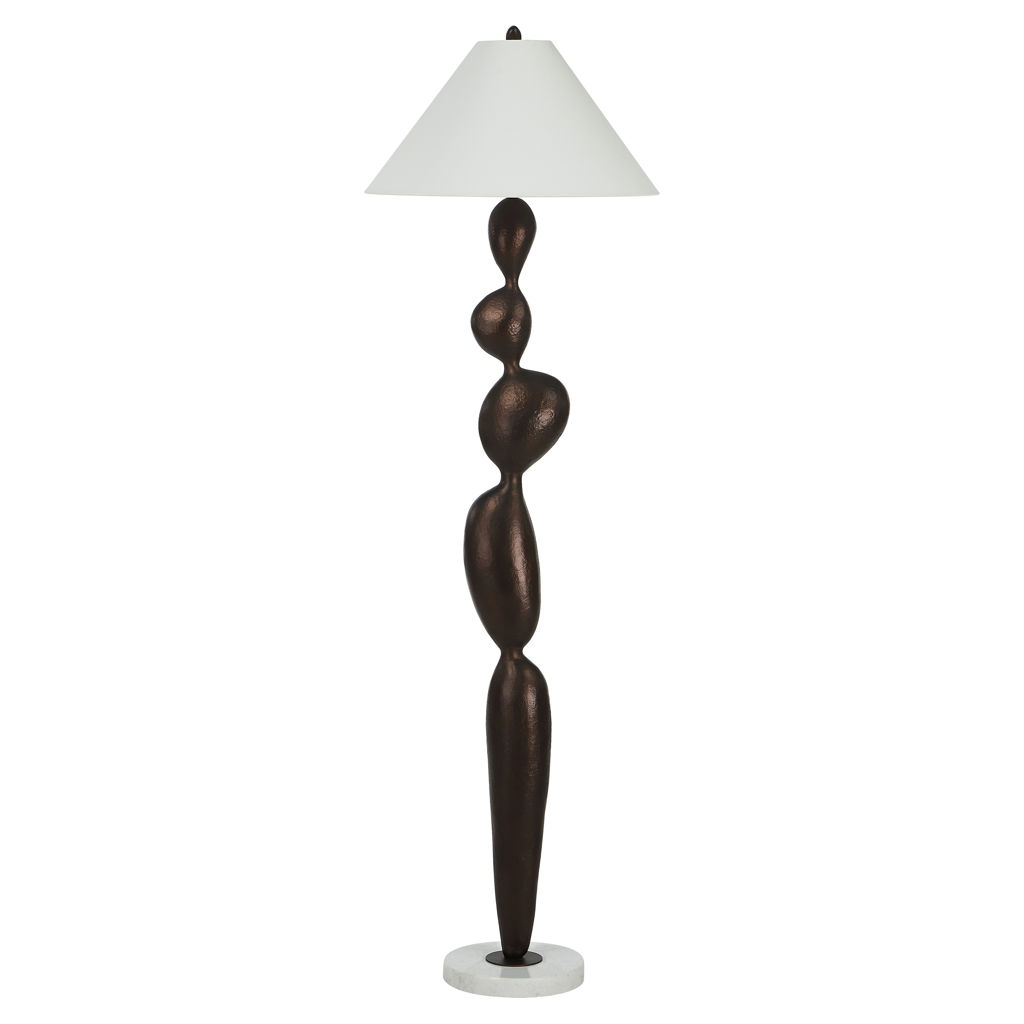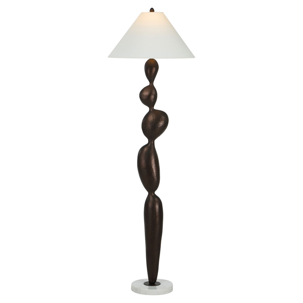Cette lampe de plancher allie une élégance sculpturale à une lumière chaleureuse et accueillante. Son corps en bronze mat et son abat-jour en lin doux lui confèrent une présence intemporelle, tandis qu'un interrupteur à trois positions permet de régler l'intensité lumineuse.