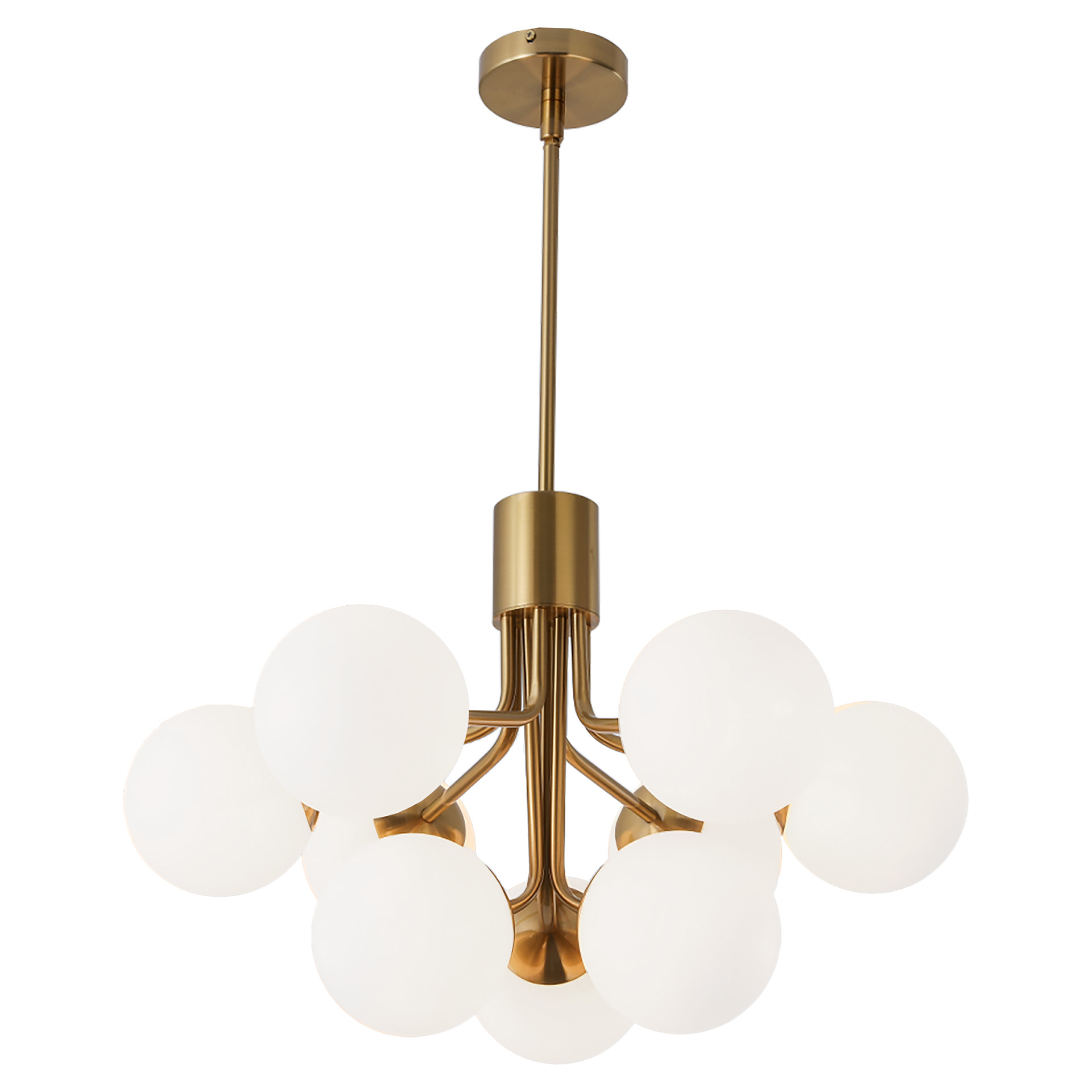 Cette lampe suspendue attire le regard par sa présence équilibrée et son éclairage enveloppant. Ses globes diffusent une lumière douce et homogène, idéale pour éclairer une salle à manger, un salon ou un espace central de la maison.