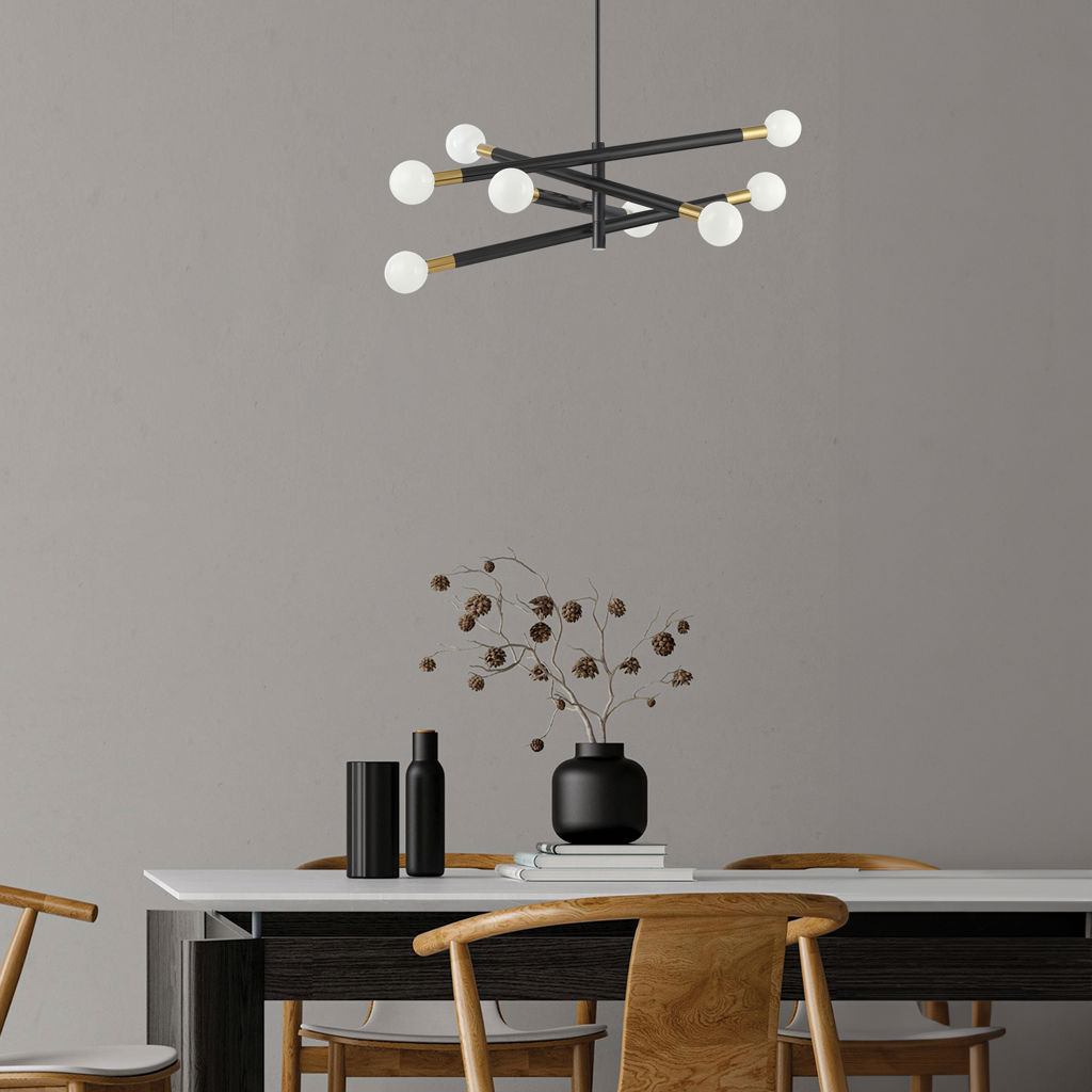 Suspension moderne Wand en métal électroplaqué pour le plafond avec 8 ampoules, base de douille E26 de 60 W maximum, graduable et approuvée UL pour les endroits secs avec une garantie limitée d'un an.