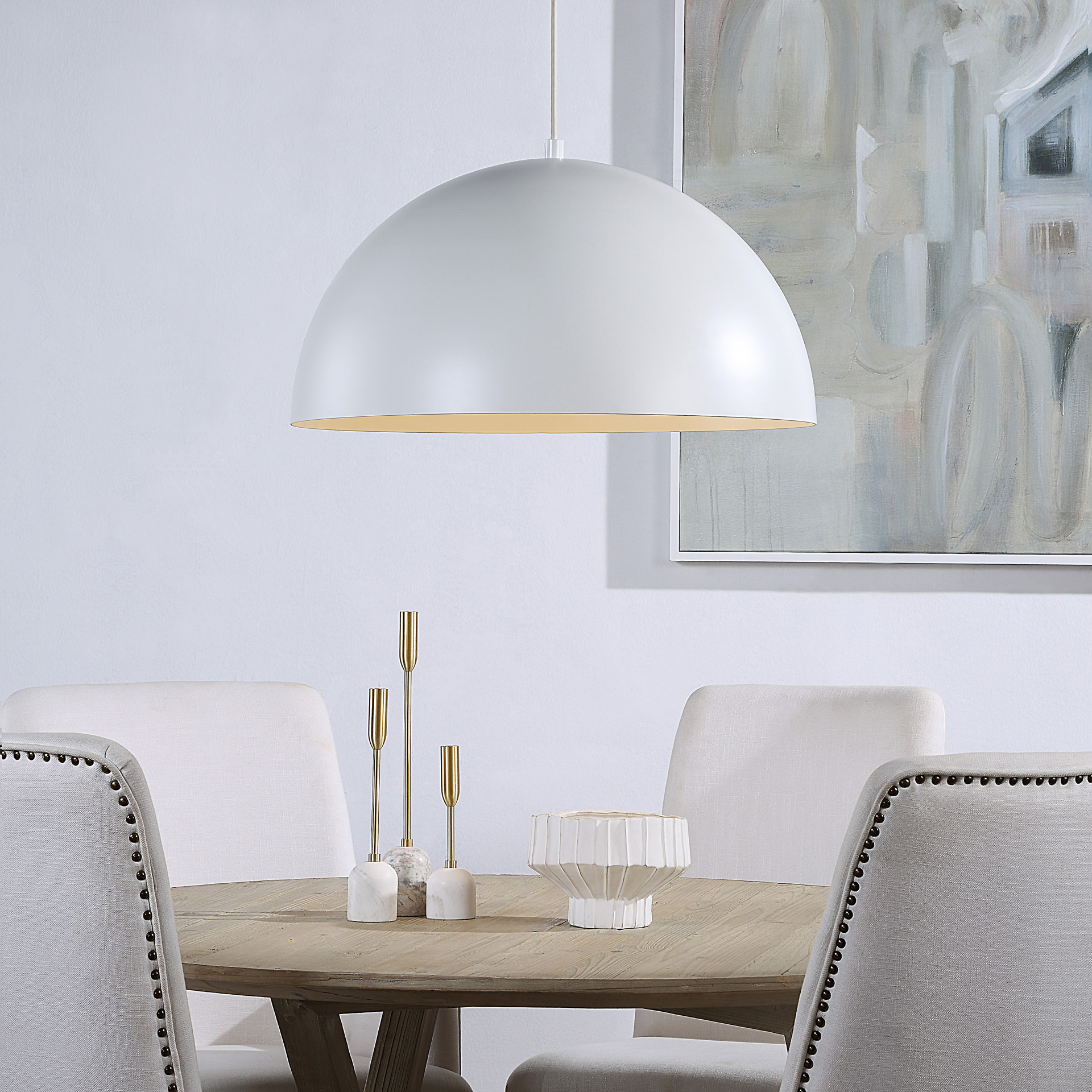 Doté d´un design facile à installer, le lustre est un ajout étonnant à n´importe quelle maison. De plus, la finition blanc cassé mat ajoute une touche de glamour qui se démarque vraiment.