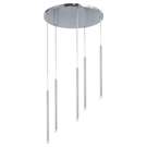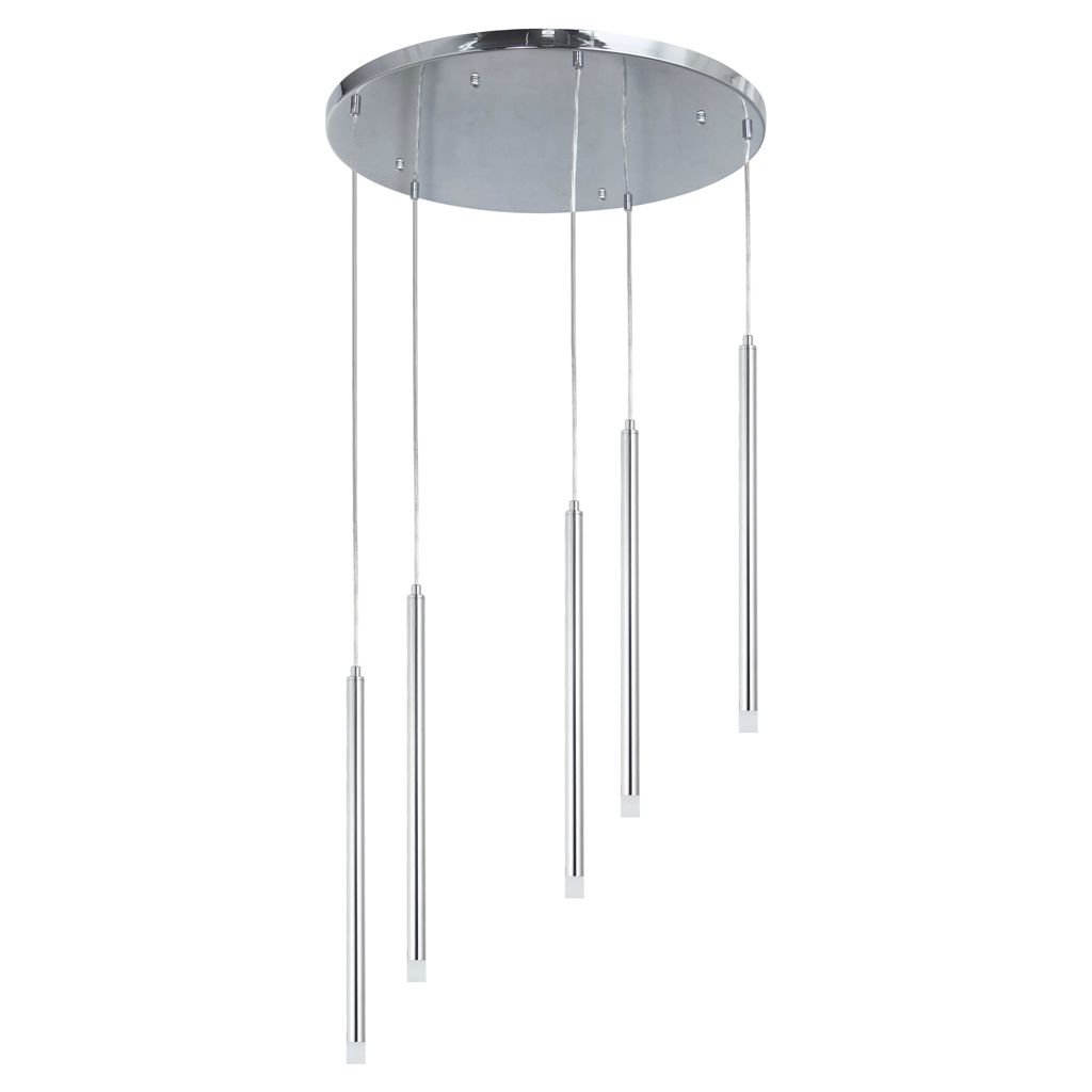 Lampe suspendue moderne Sanya en métal chromé poli électroplaqué avec 5 ampoules, culot LED CC 3 watts max. Intensité variable et homologué UL pour l'humidité avec une garantie limitée de 3 ans.