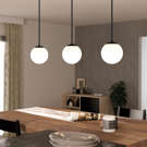 Apportez luminosité et élégance intemporelle avec cette suspension aux lignes épurées. Son globe en verre blanc opale diffuse une lumière douce et uniforme, créant une ambiance accueillante dans n'importe quelle pièce. La quincaillerie noire ajoute une touche de raffinement discret.